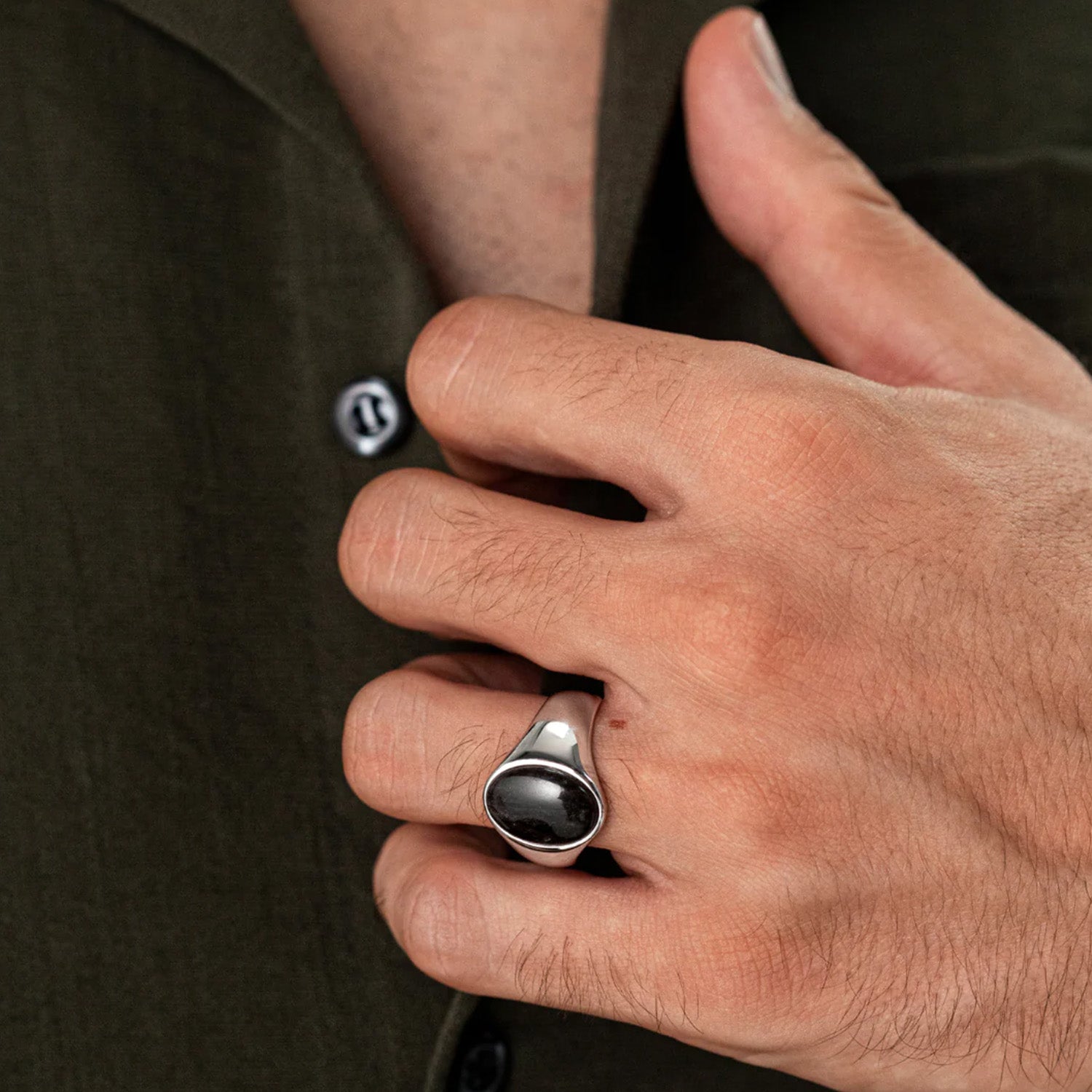 Alexander Lynggaard - Oval Signet Silver Obsidian ring - Sølv