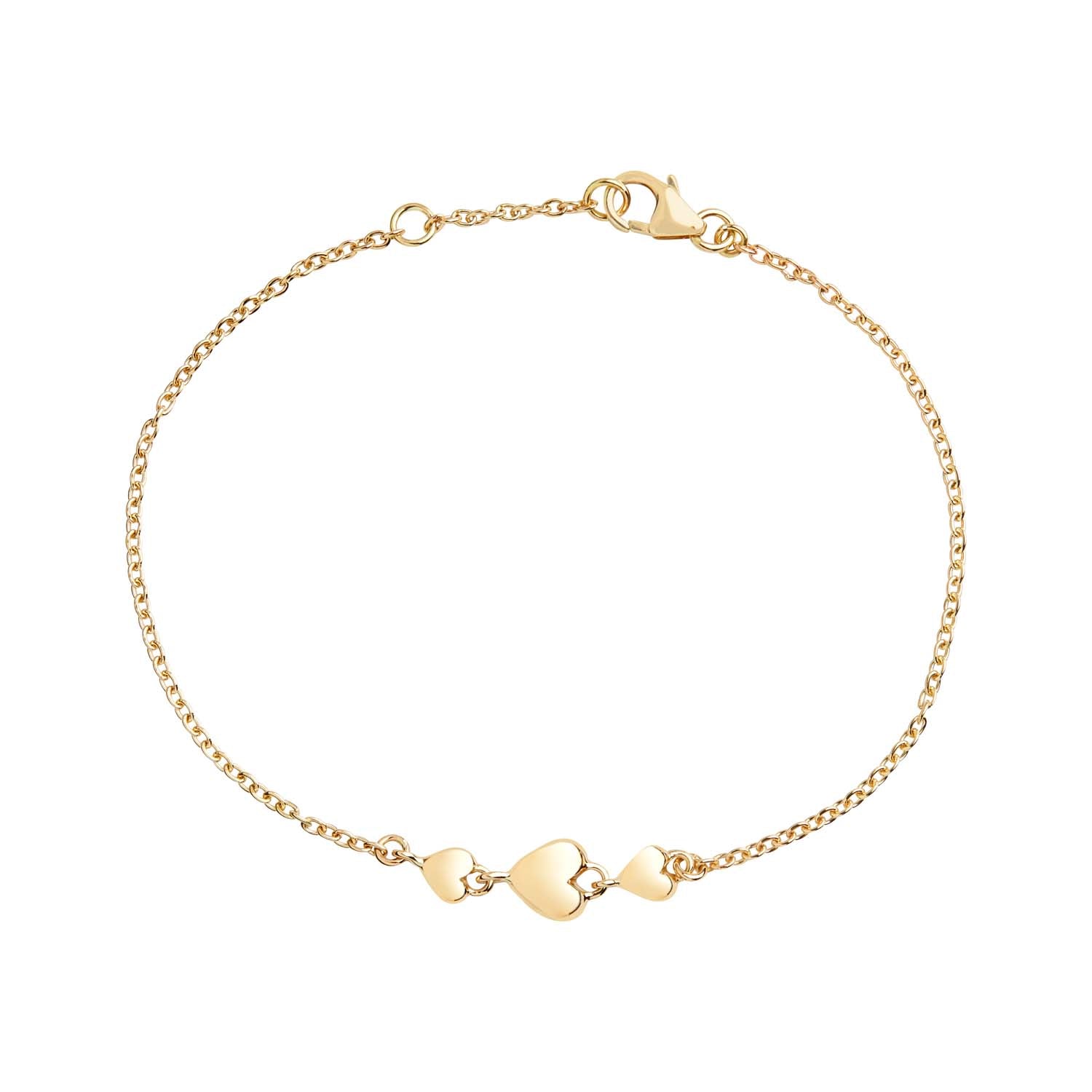 Aveny COLLECTION - Ankerarmbånd m. 3 hjerter, 17-19 cm - 14 kt. guld
