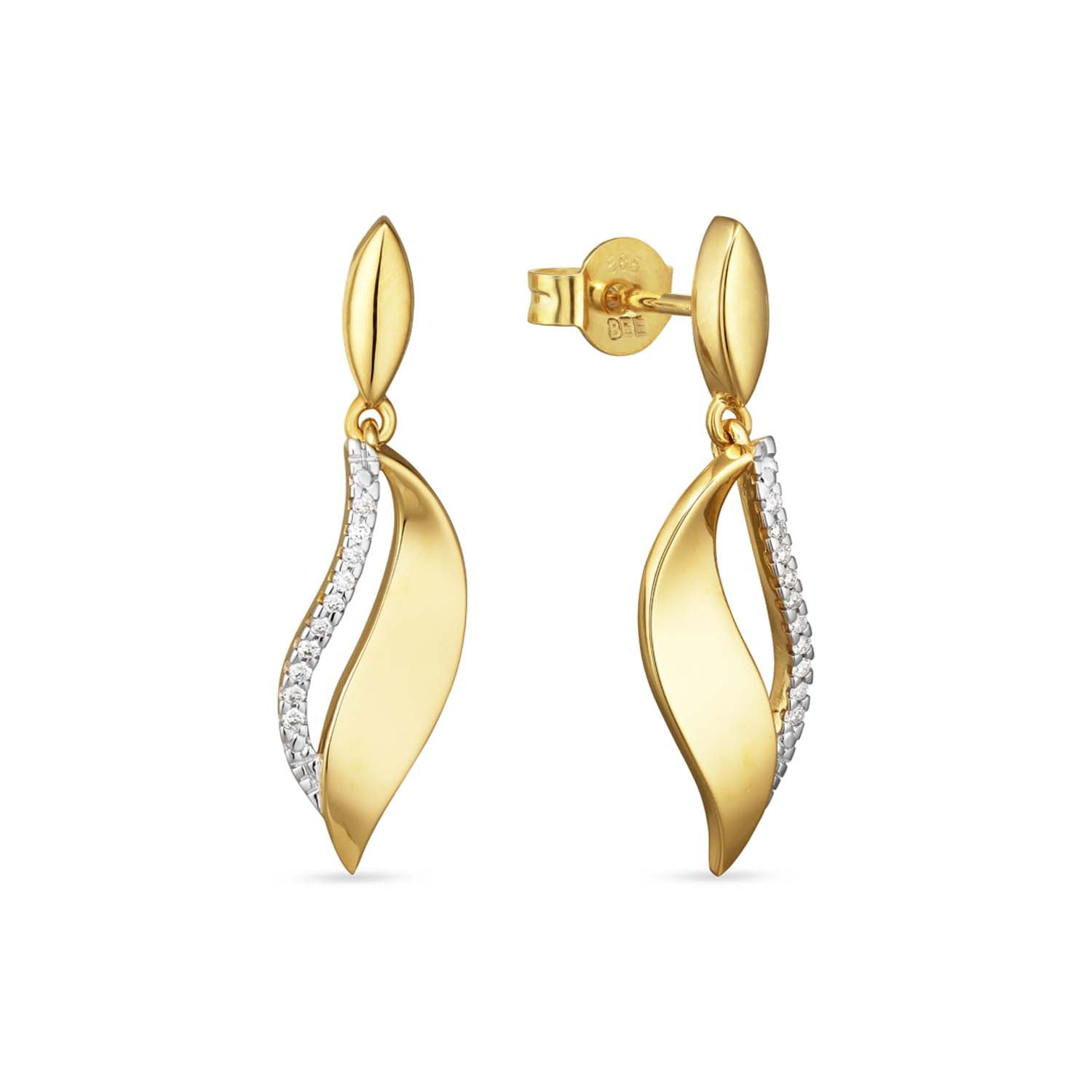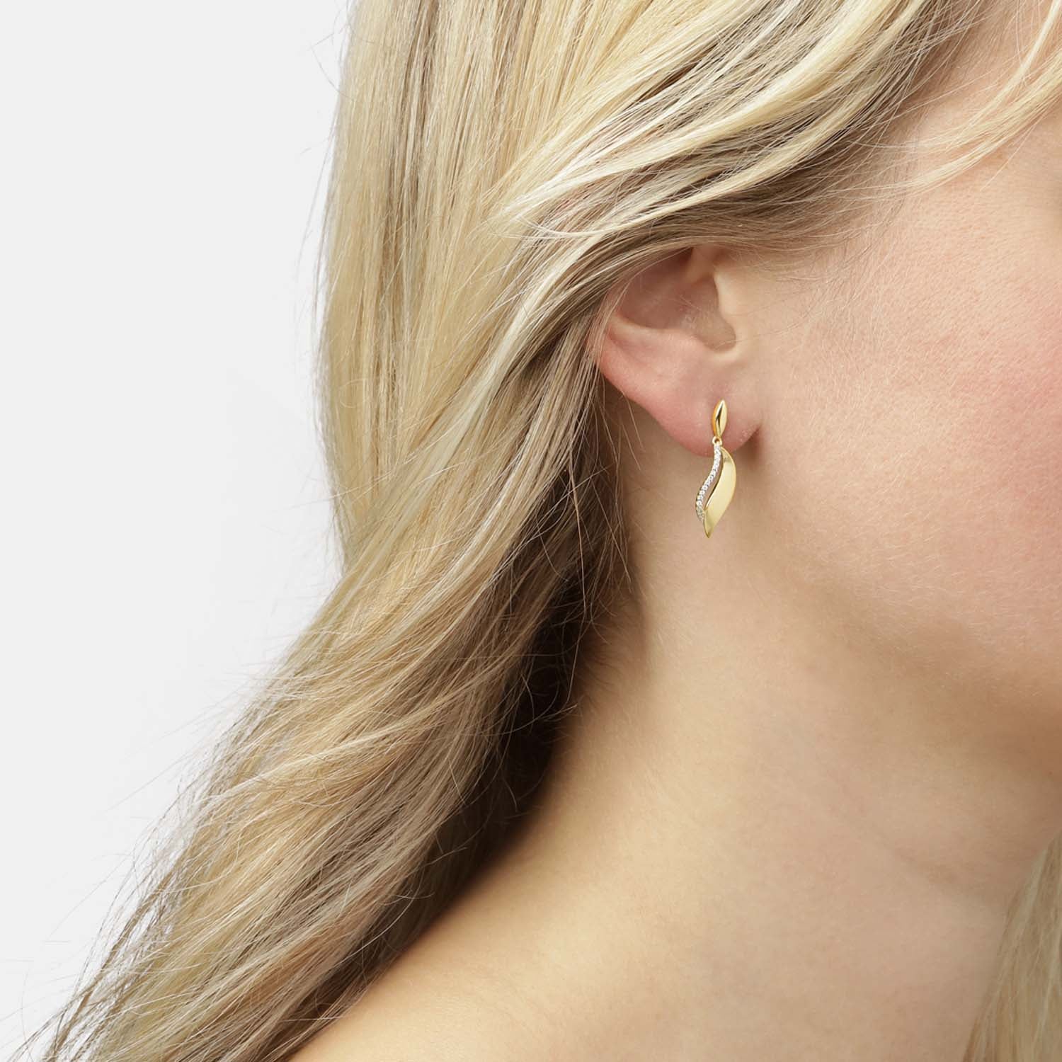Aveny COLLECTION - Øreringe m. blad, 0,06 ct. w/si - 14 kt. guld