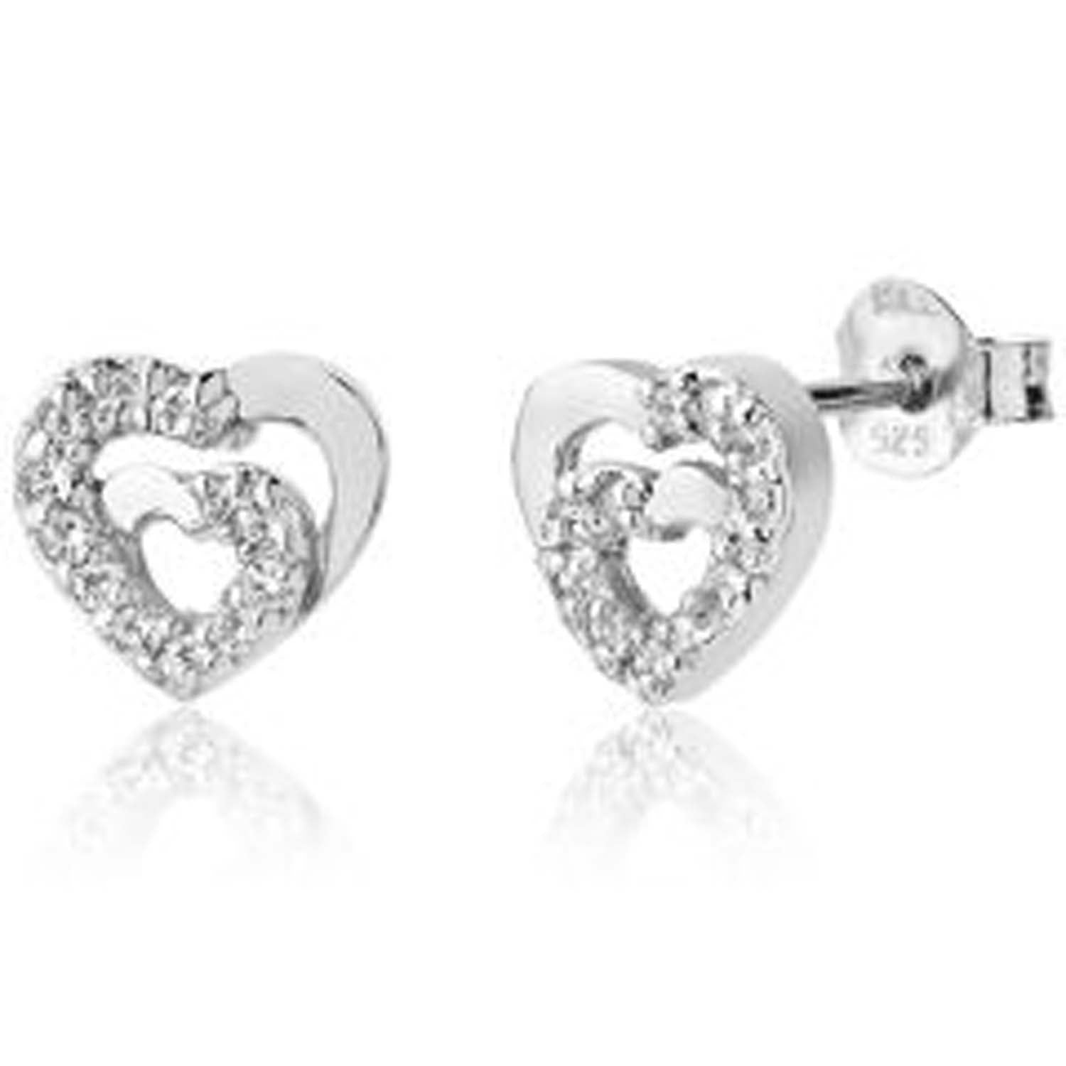 Aveny COLLECTION - Ørestikker m. dobbelthjerte, zirkonia - Sølv