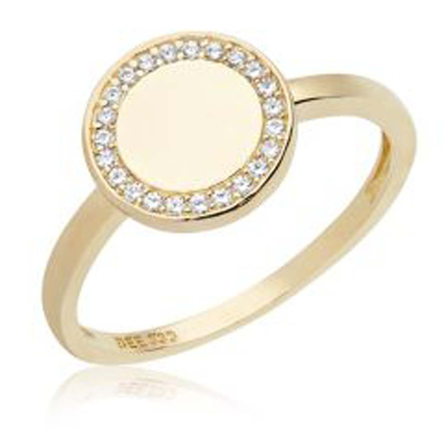 Aveny COLLECTION - Ring m. plade med, zirkonia/10 mm - 8 kt. guld