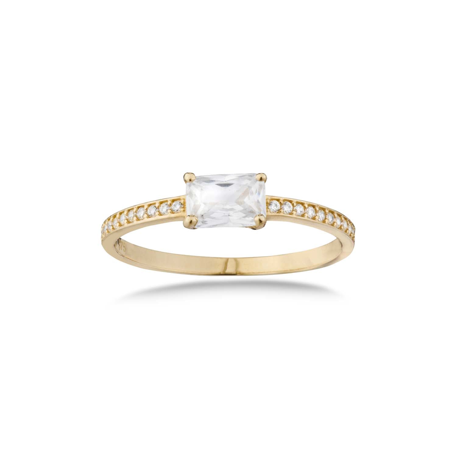 Aveny COLLECTION - Ring m. zirkonia ned af skinnen - 8 kt. guld