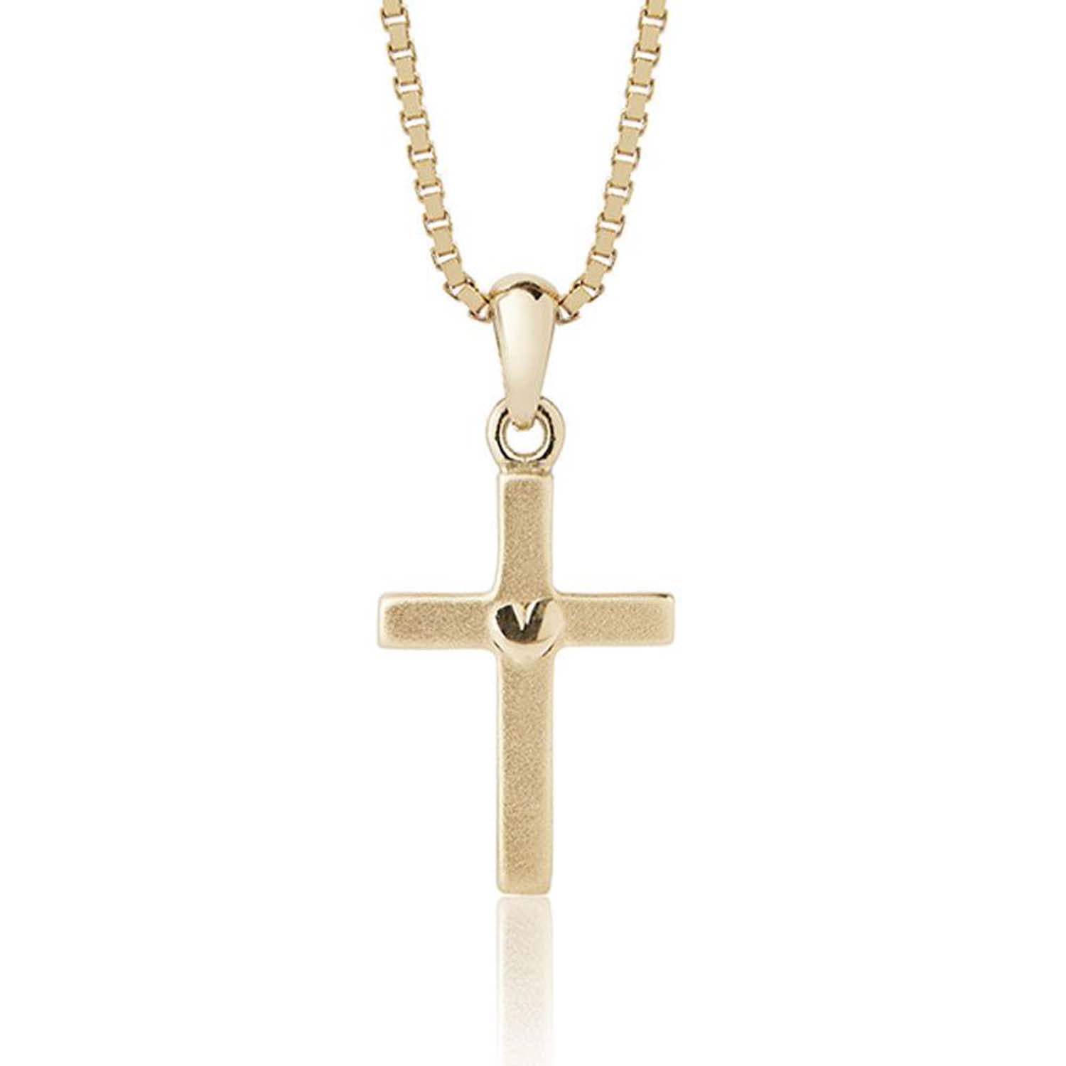 Aveny COLLECTION - Lille mat kors m. hjerte i midten - 8 kt. guld