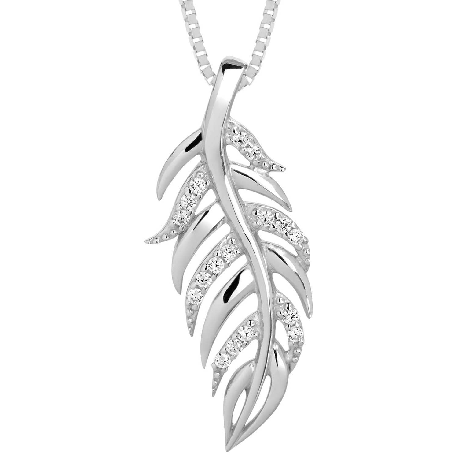 Aveny COLLECTION - Vedhæng m. stort blad, zirkonia - Sølv