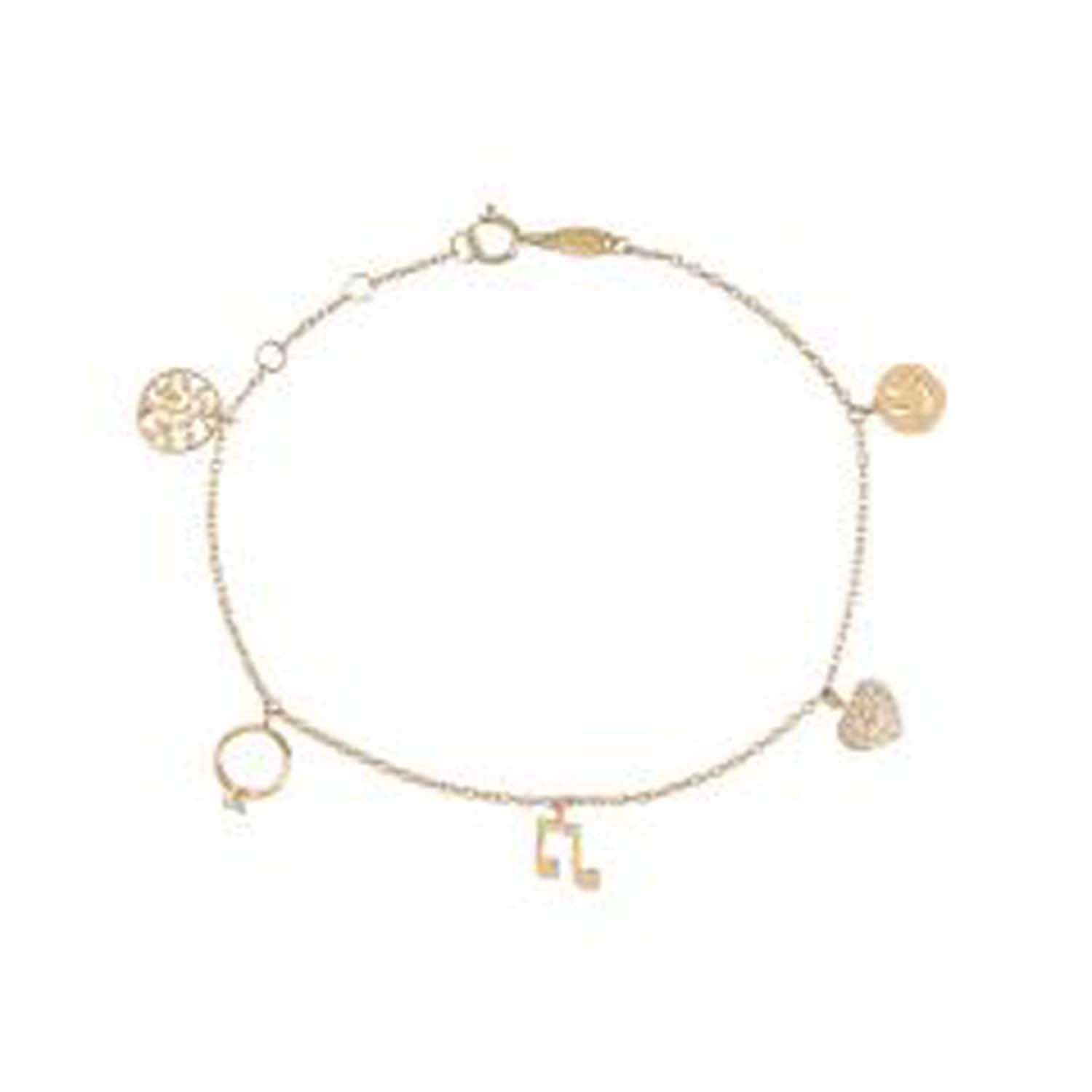 Aveny COLLECTION - Armbånd m. 5 charms, 16-18 cm 8 kt. guld
