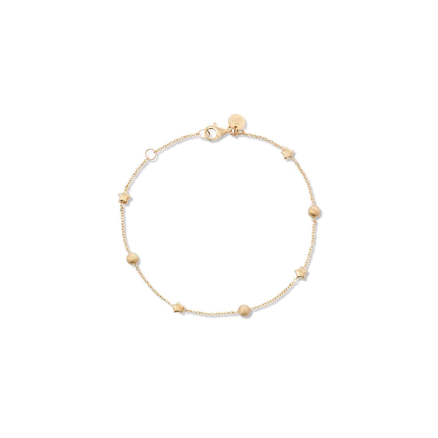 Aveny COLLECTION - Armbånd m. stjerne, mat kugle/18-20 cm - 14 kt. guld