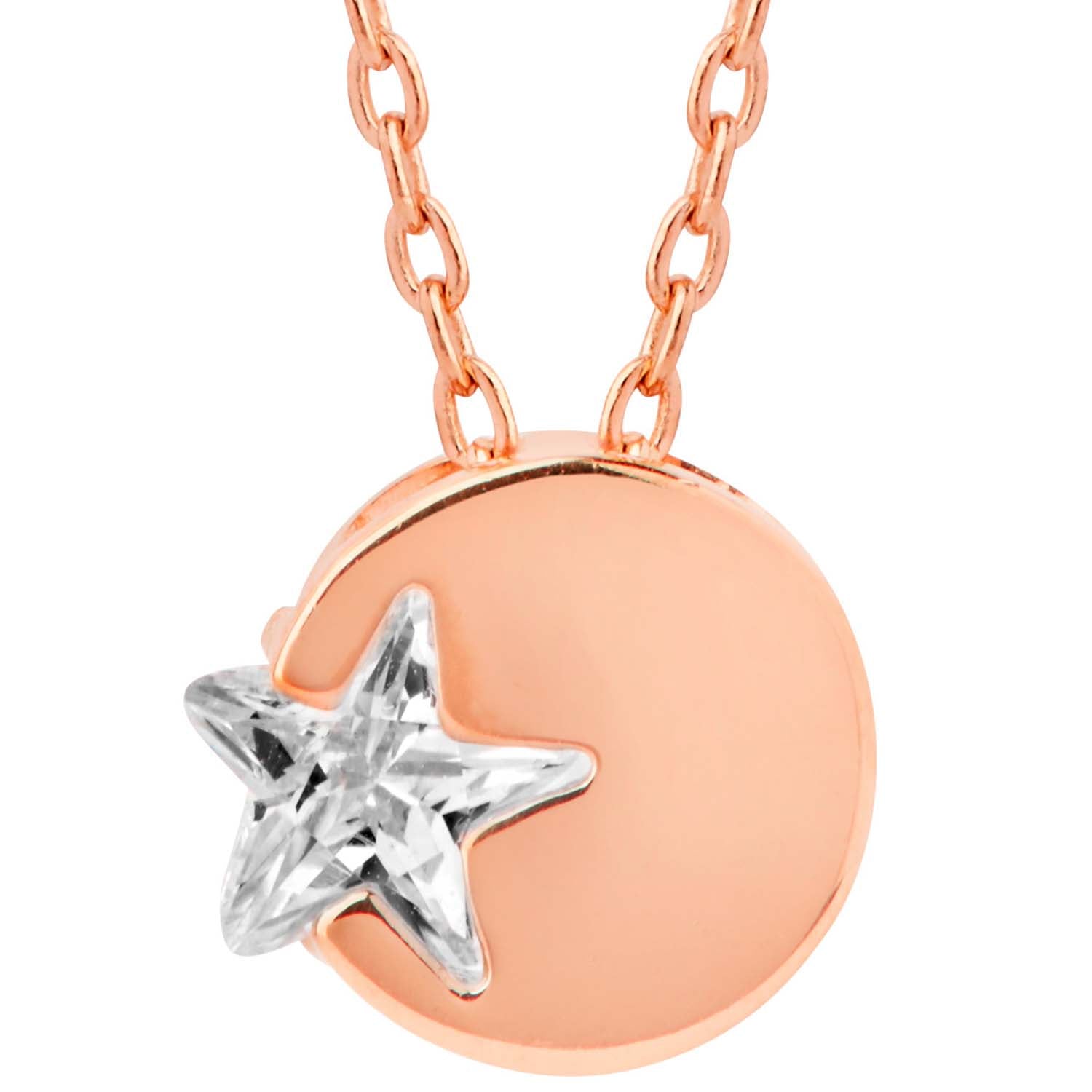 Aveny COLLECTION - Collier m. pladevedhæng, zirkonia - Rosaforgyldt sølv