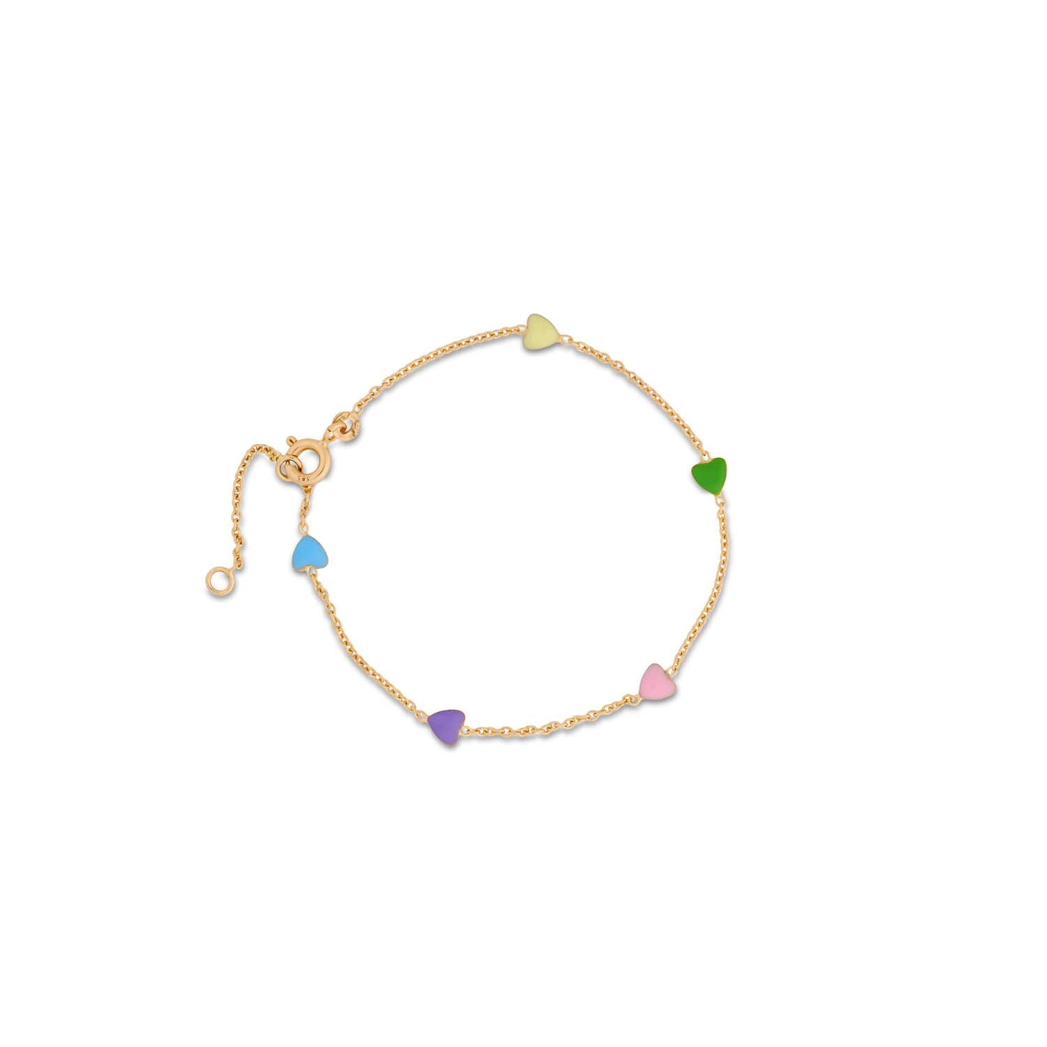 Aveny COLLECTION - Børnearmbånd m. 5 hjerter, multi emalje/14-16 cm - 14 kt. guld