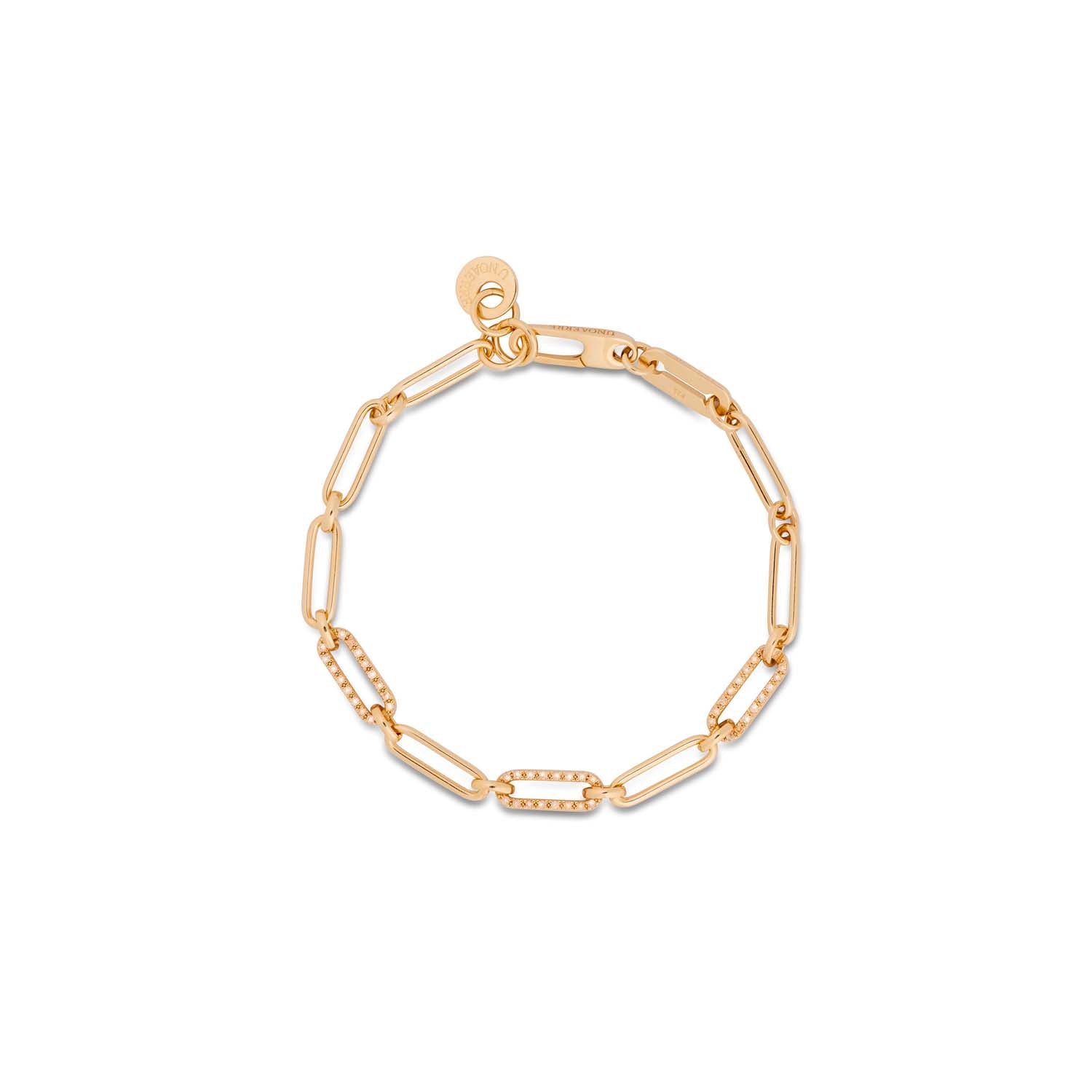 Aveny COLLECTION - Paperclipsarmbånd, champagne zirkonia/18,5-20 cm - Forgyldt sølv