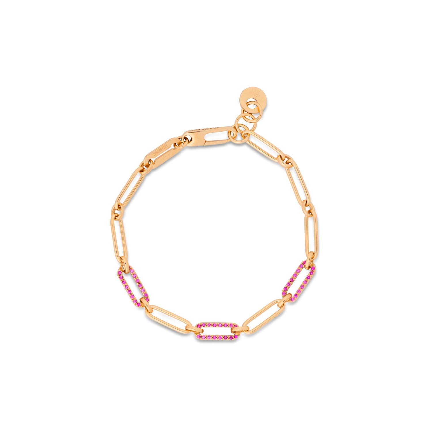 Aveny COLLECTION - Paperclipsarmbånd, pink zirkonia/18,5-20 cm - Forgyldt sølv
