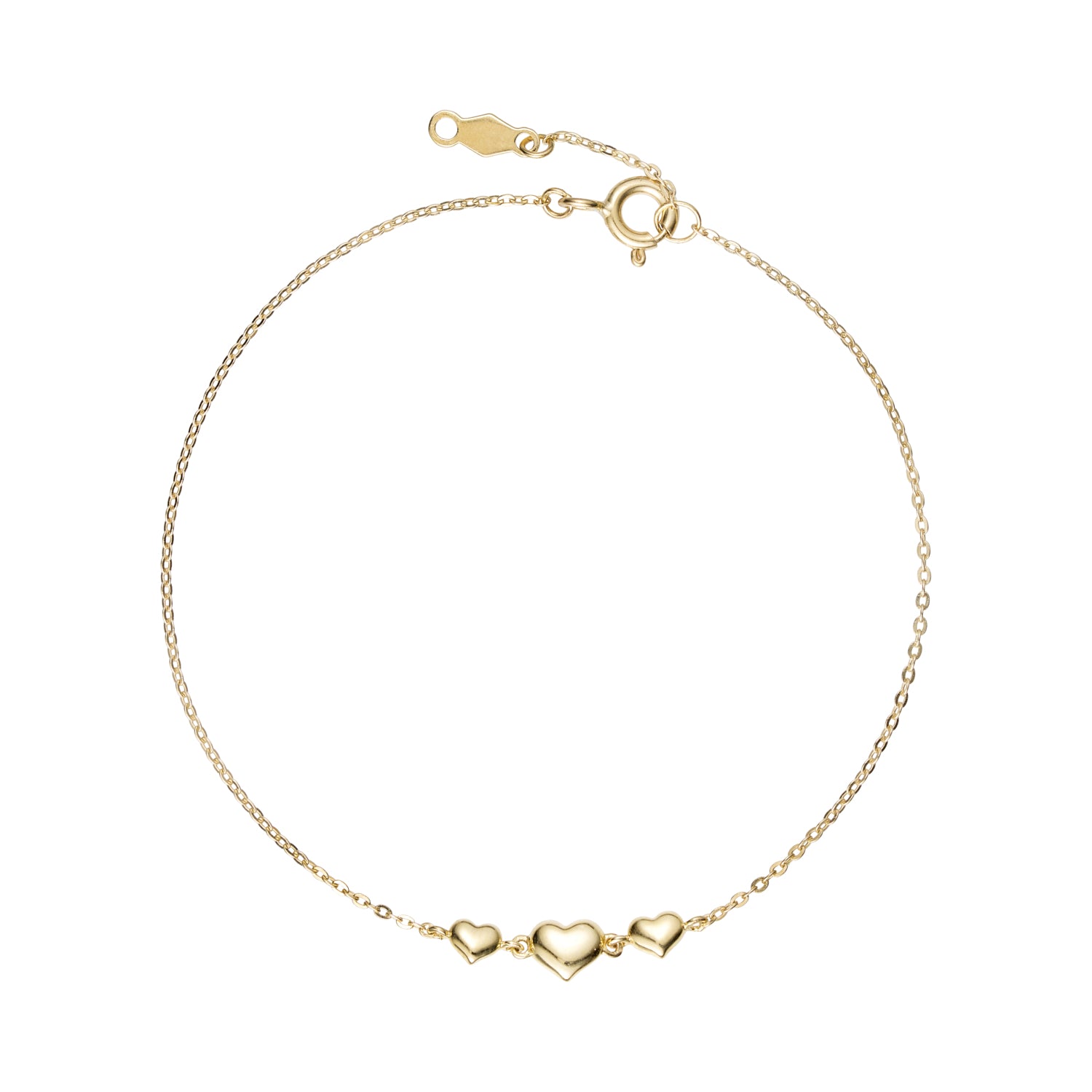 Aveny NINE K - Armbånd med 3 små hjerter i 9 kt. guld