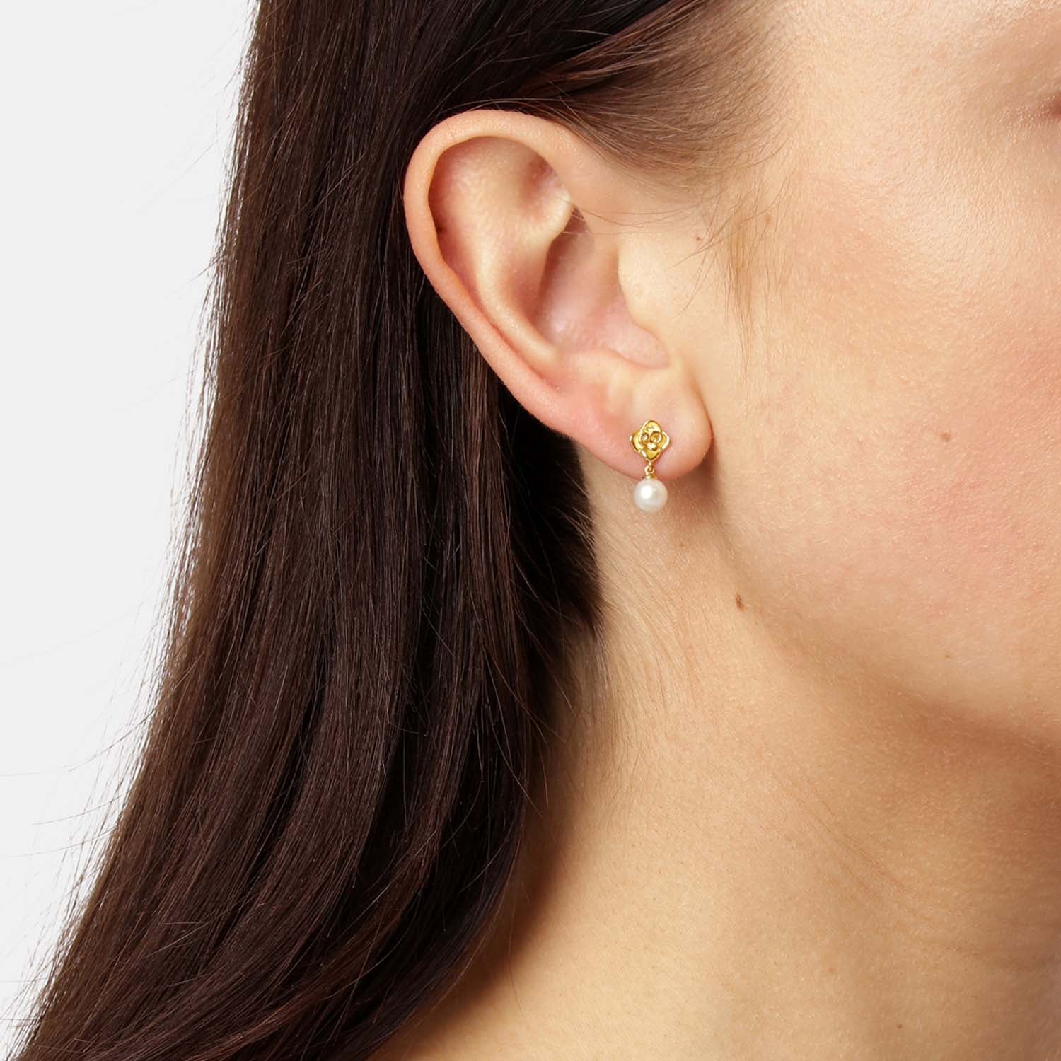 Aveny NINE K - Øreringe med rose, ferskvandsperle - 9 kt. guld