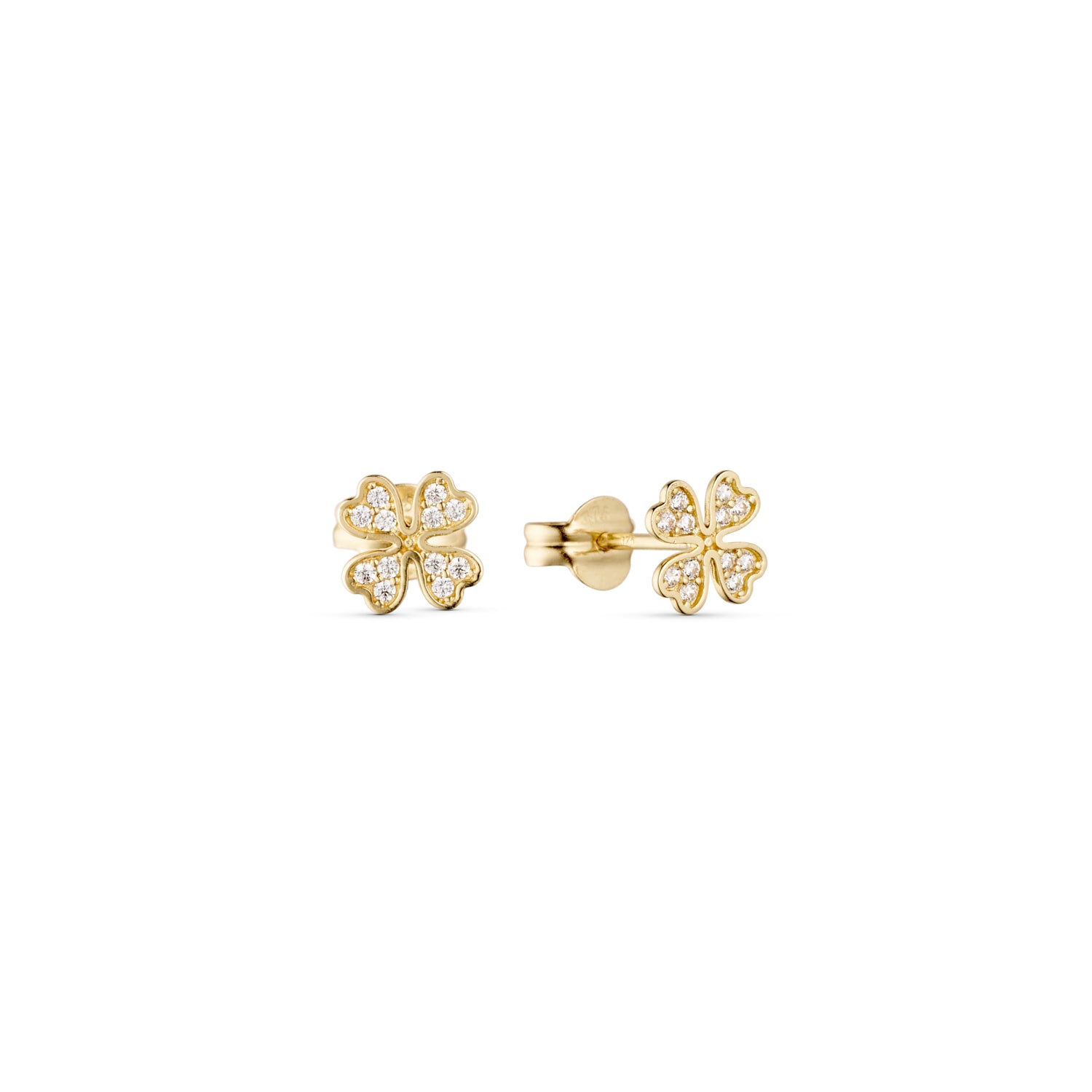 Aveny NINE K - Ørestikker m. firkløver, zirkonia - 9 kt. guld