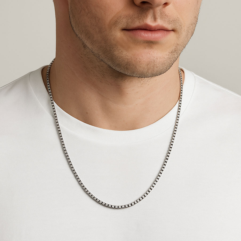 Opdag den maskuline charme og det tidløse design med MAENDs Venezia kæde. Denne 60 cm lange kæde er fremstillet i holdbart rustfrit stål og udstråler en subtil elegance, der komplementerer enhver stil. Uanset anledningen, fra dåb til fars dag, studentergave eller fødselsdag, er denne kæde den perfekte gave til ham.