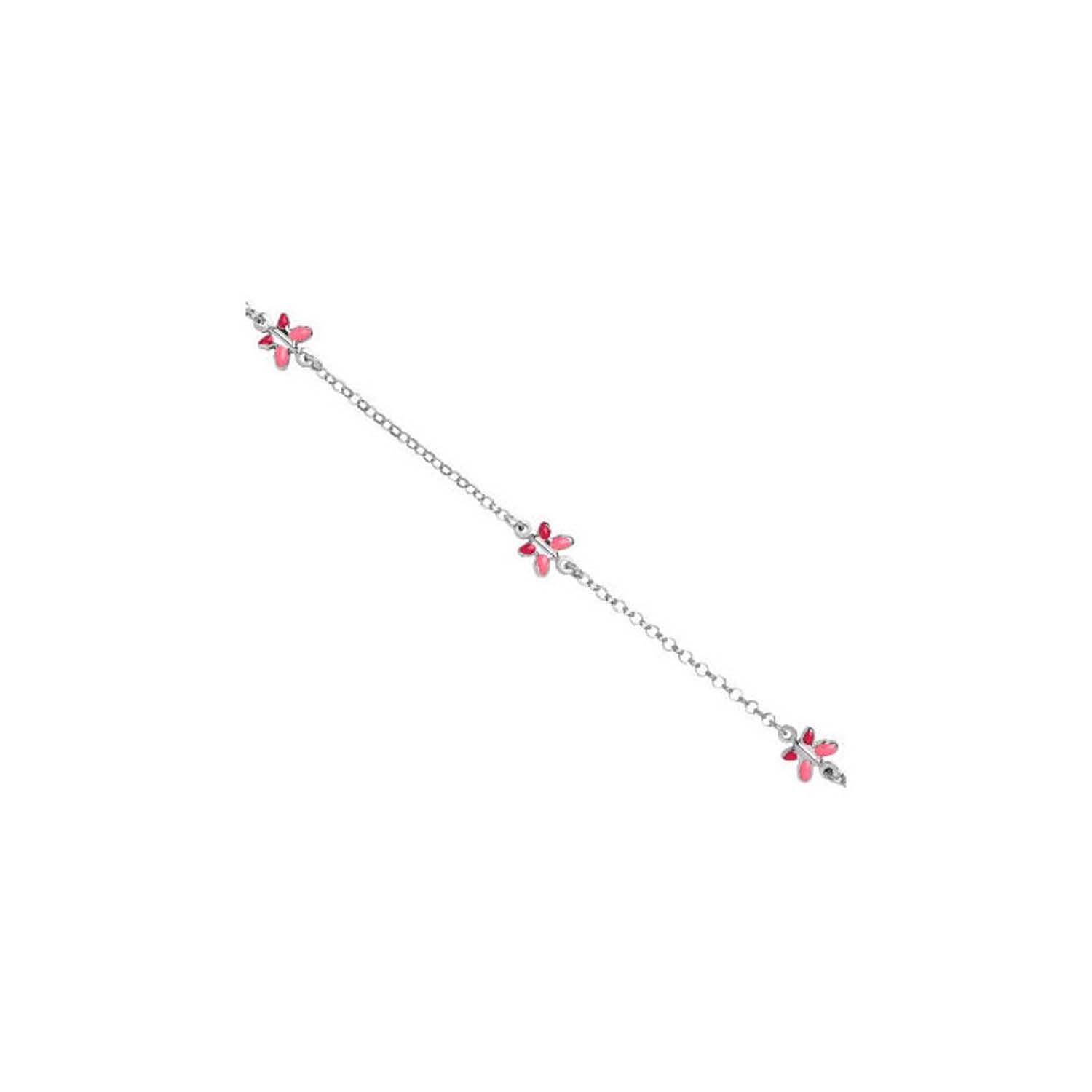 Aveny COLLECTION - Børnearmbånd m. pink sommerfugle, 14-16 cm - Sølv