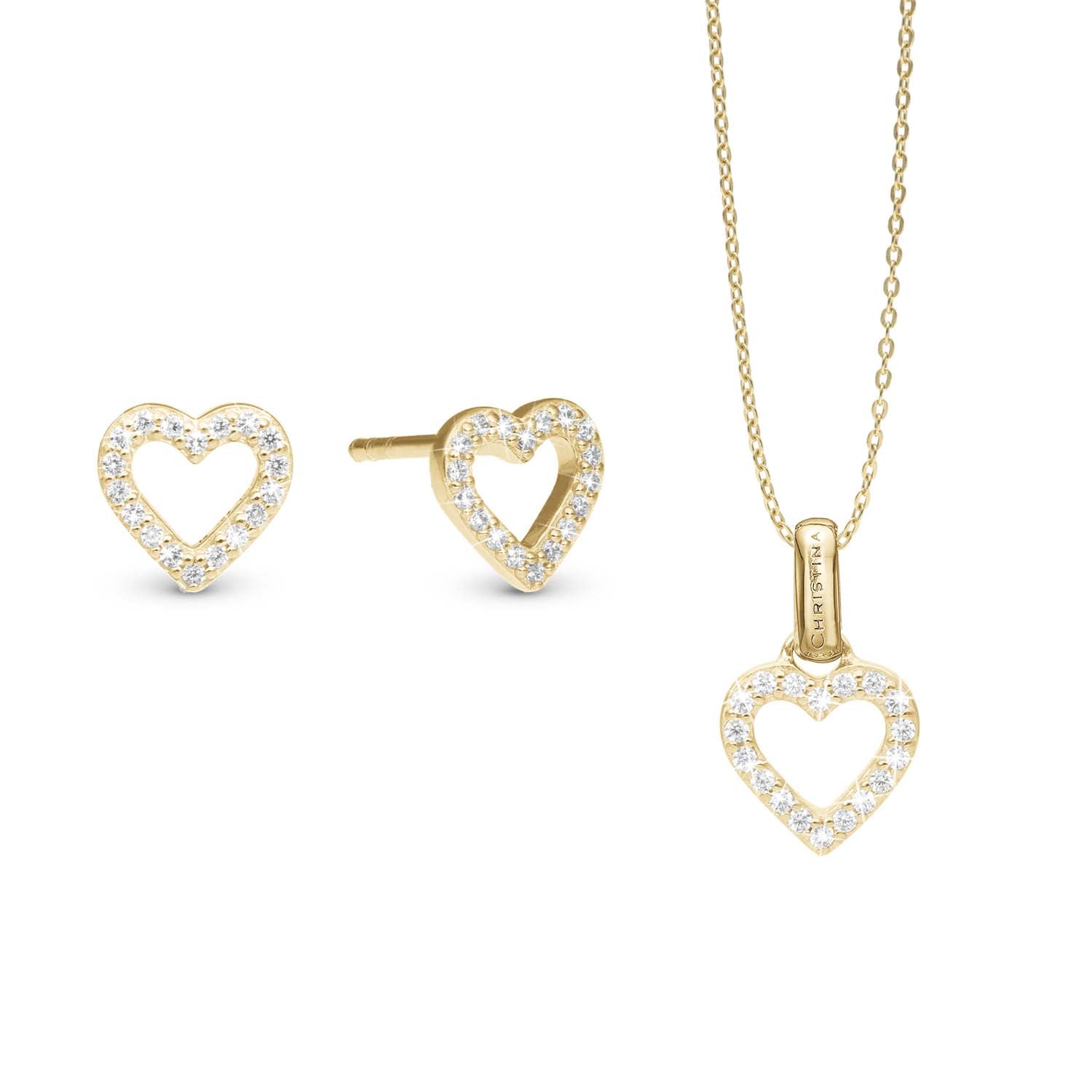 Christina - Shimmery Heart smykkesæt - Forgyldt sølv