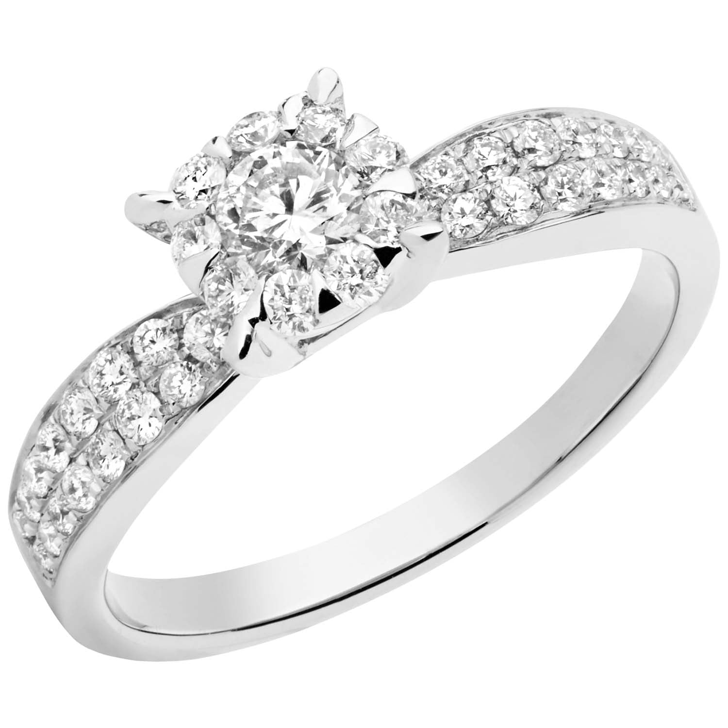 Aveny COLLECTION - Solitairering m. diamanter på skinne, 0,61 ct. w/si - 14 kt. hvidguld