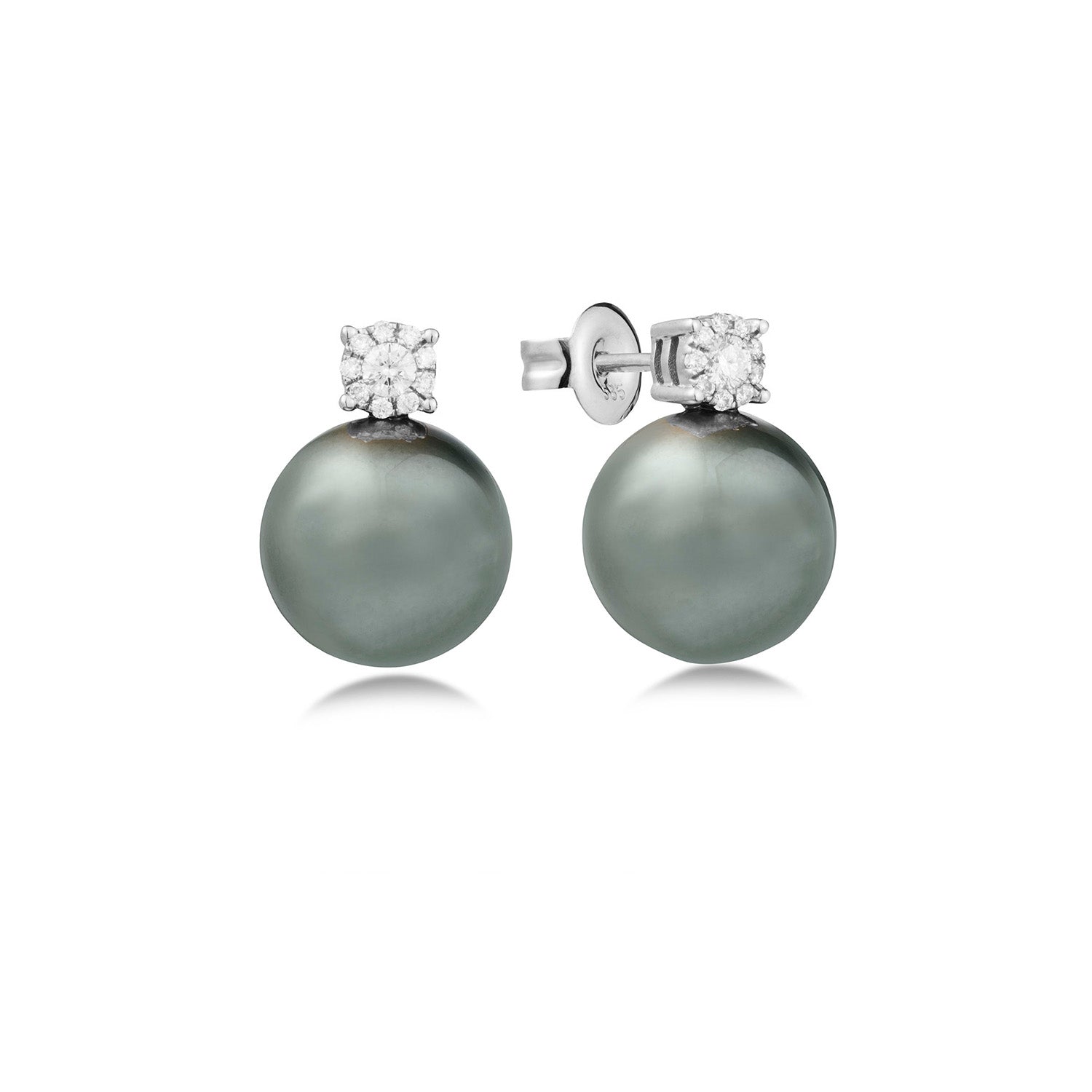 Aveny LUXURY - Ørestikker m. tahitiperle, 10 mm/0,14 ct. w/si - 14 kt. guld