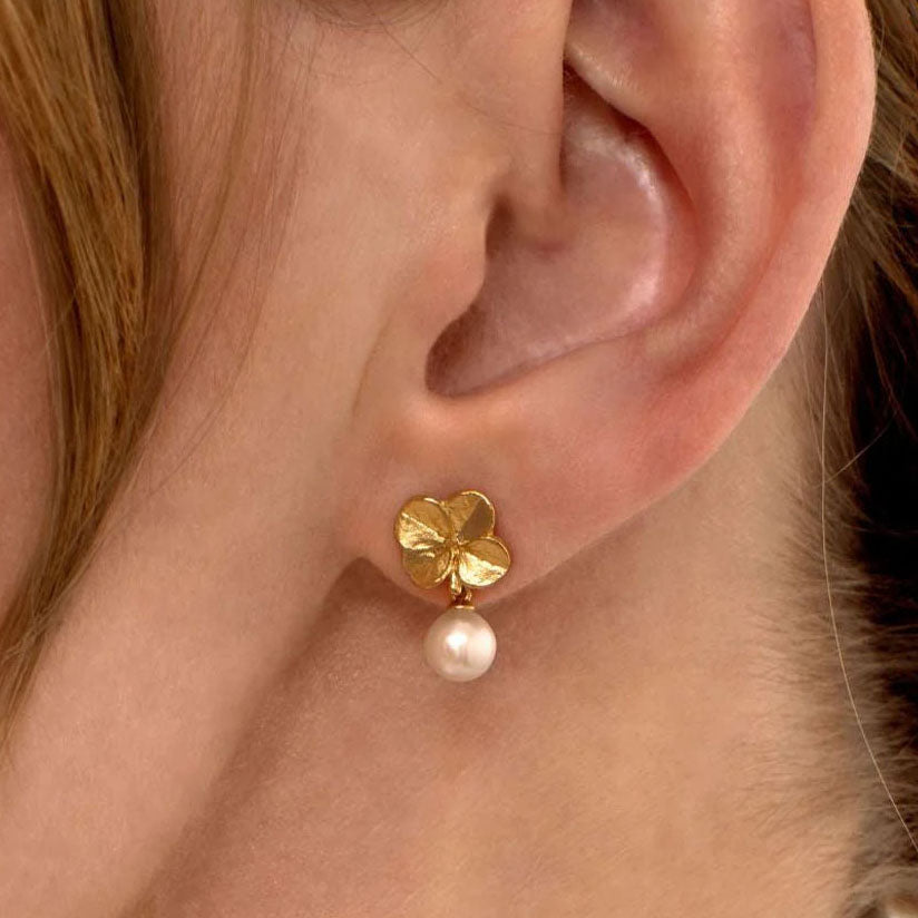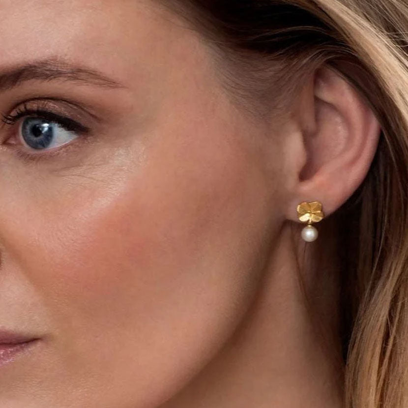 Flora Danica - Firkløver øreringe - FLC-STPCPEARL-G