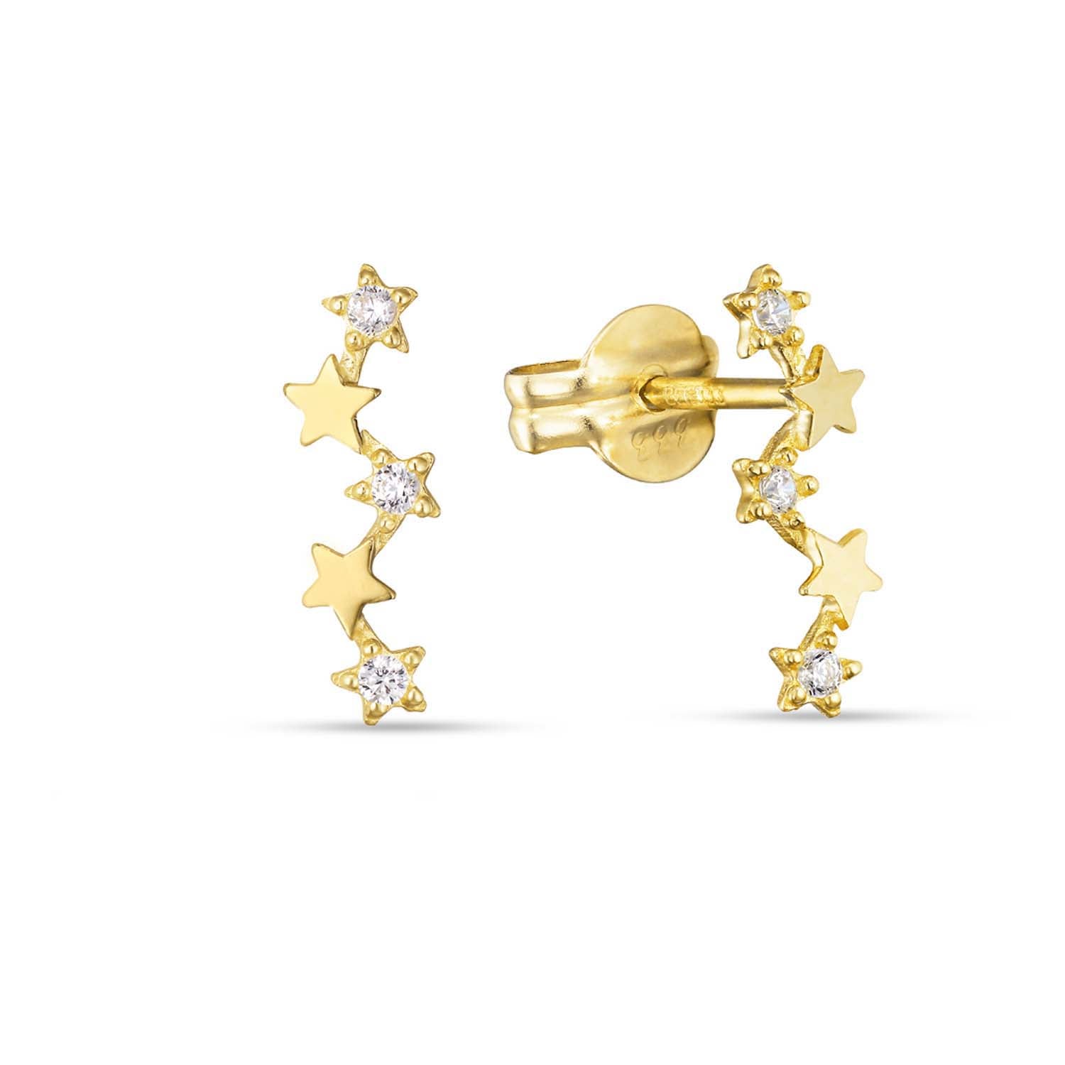 Aveny COLLECTION - Øreringe m. stjerner, 3x3 zirkonia - 8 kt. guld