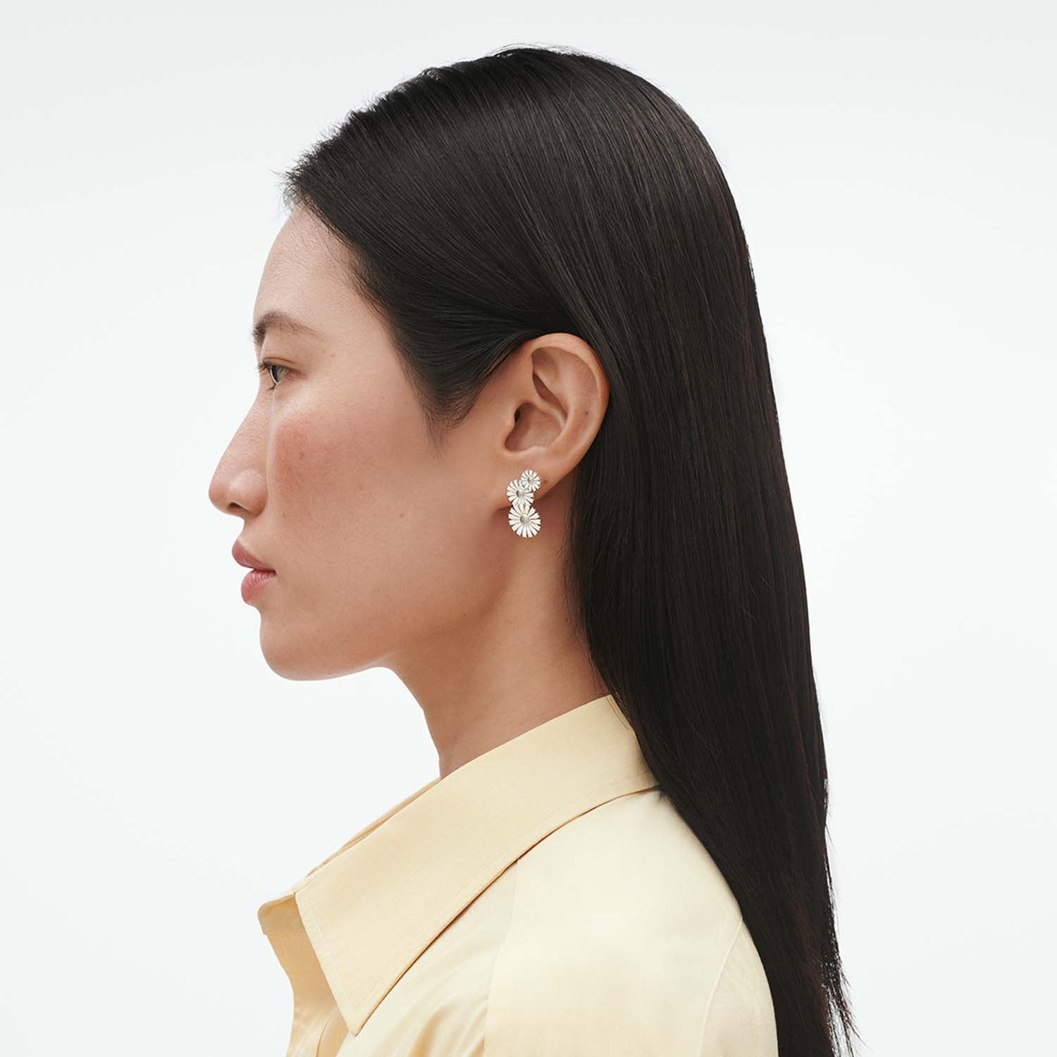 De fine margueritdetaljer på ørestikkerne fanger lyset smukt og tilføjer en subtil glans til dit look. Sølvfarven komplimenterer enhver hudtone og kan nemt matches med andre smykker fra Georg Jensens Daisy kollektion.