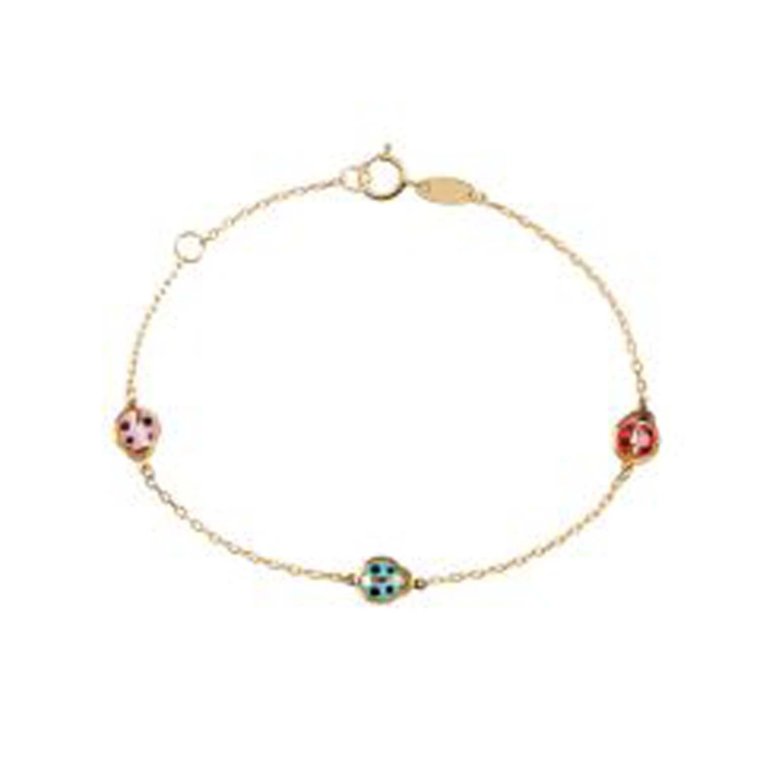 Aveny COLLECTION - Børnearmbånd m. 3 mariehøns, 13-15 cm - 8 kt. guld