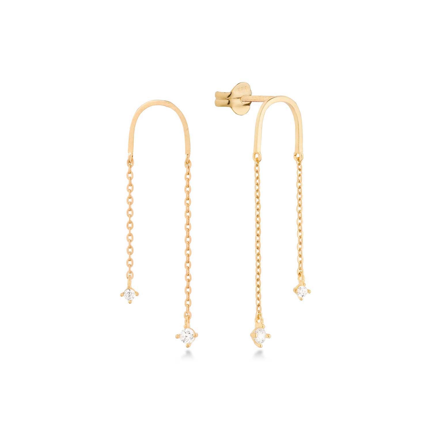 Aveny COLLECTION - Ørestikker med kæde, zirkonia - 8 kt. guld