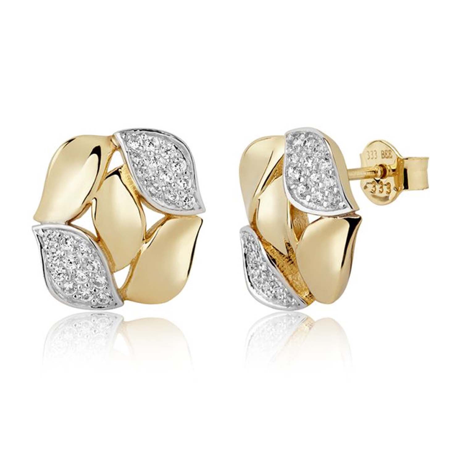 Aveny COLLECTION - Ørestikker m. blad, bred/zirkonia - 8 kt. guld