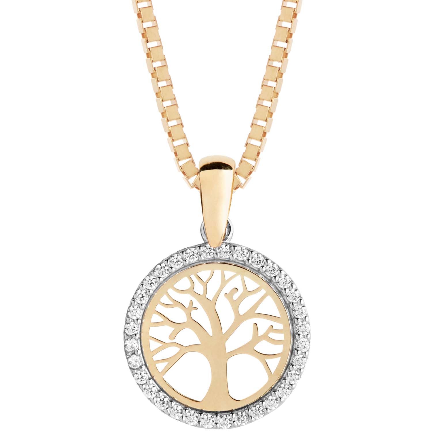 Aveny COLLECTION - Cirkelvedhæng m. zirkonia, livets træ - 14 kt. guld