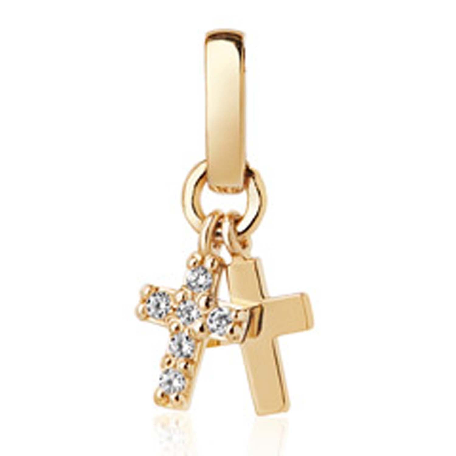 Aveny COLLECTION - Vedhæng m. to små kors, zirkonia - 14 kt. guld