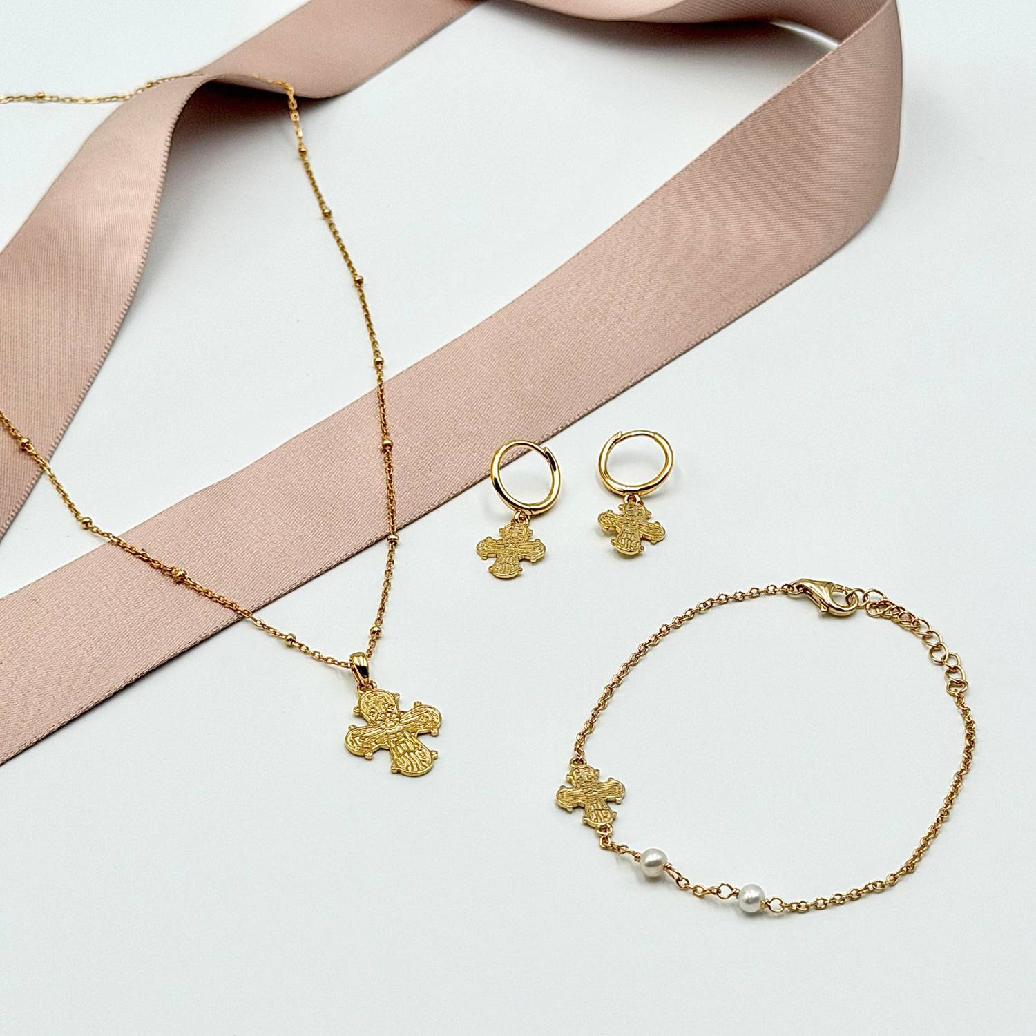 Luvalu Jewellery - Dagmarkors halskæde, 42+3 cm - Forgyldt sølv