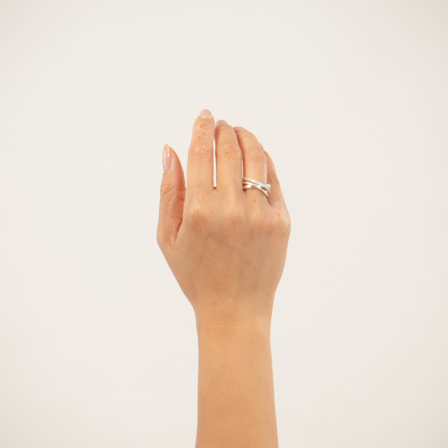 - Elegant design: Den krydsede form giver ringen et unikt og moderne udtryk.