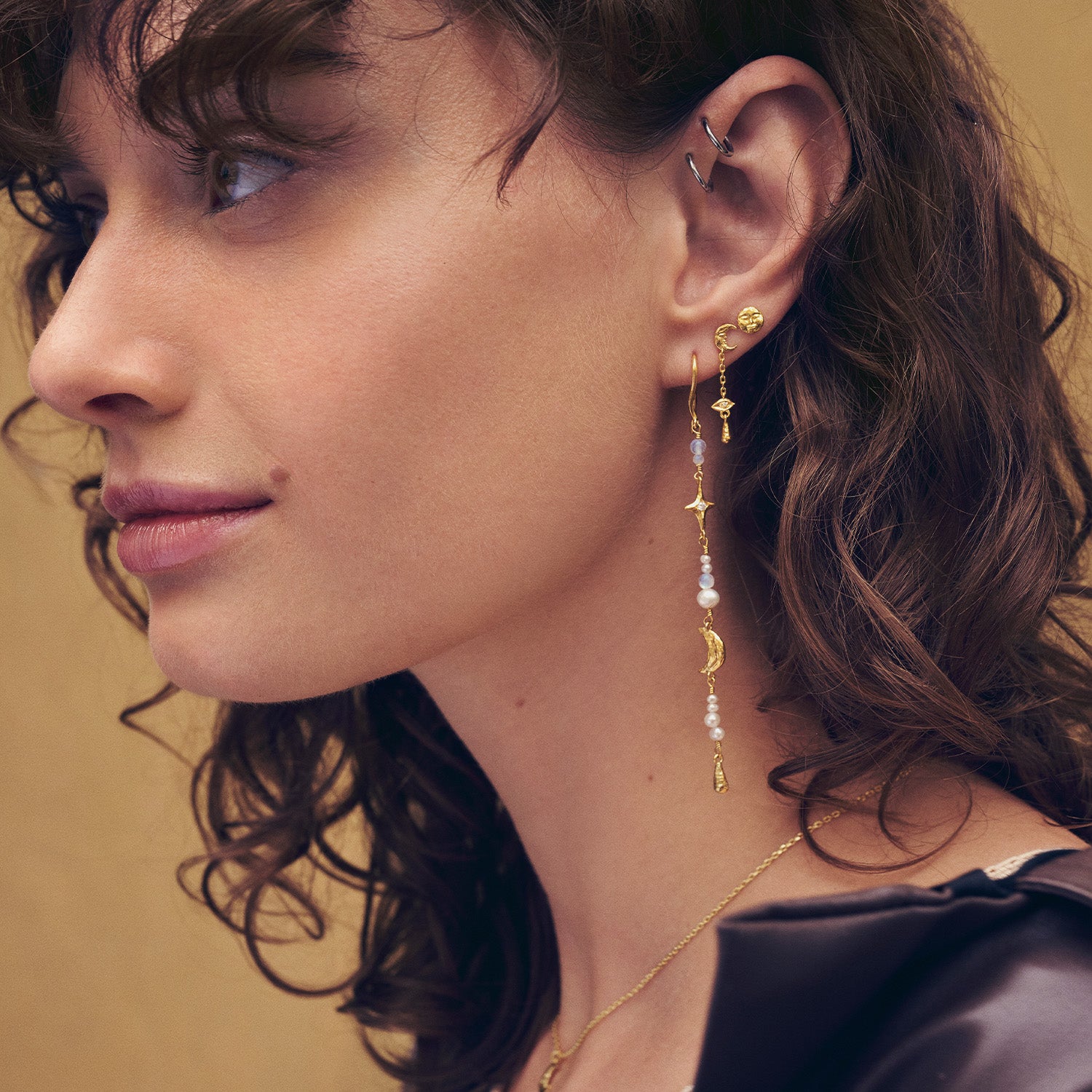 Emma øreringene fra Maanesten er en smuk tilføjelse til enhver kvindes smykkesamling. Disse øreringe er udført i forgyldt sølv og udstråler en varm, gylden glød, der komplementerer ethvert outfit.