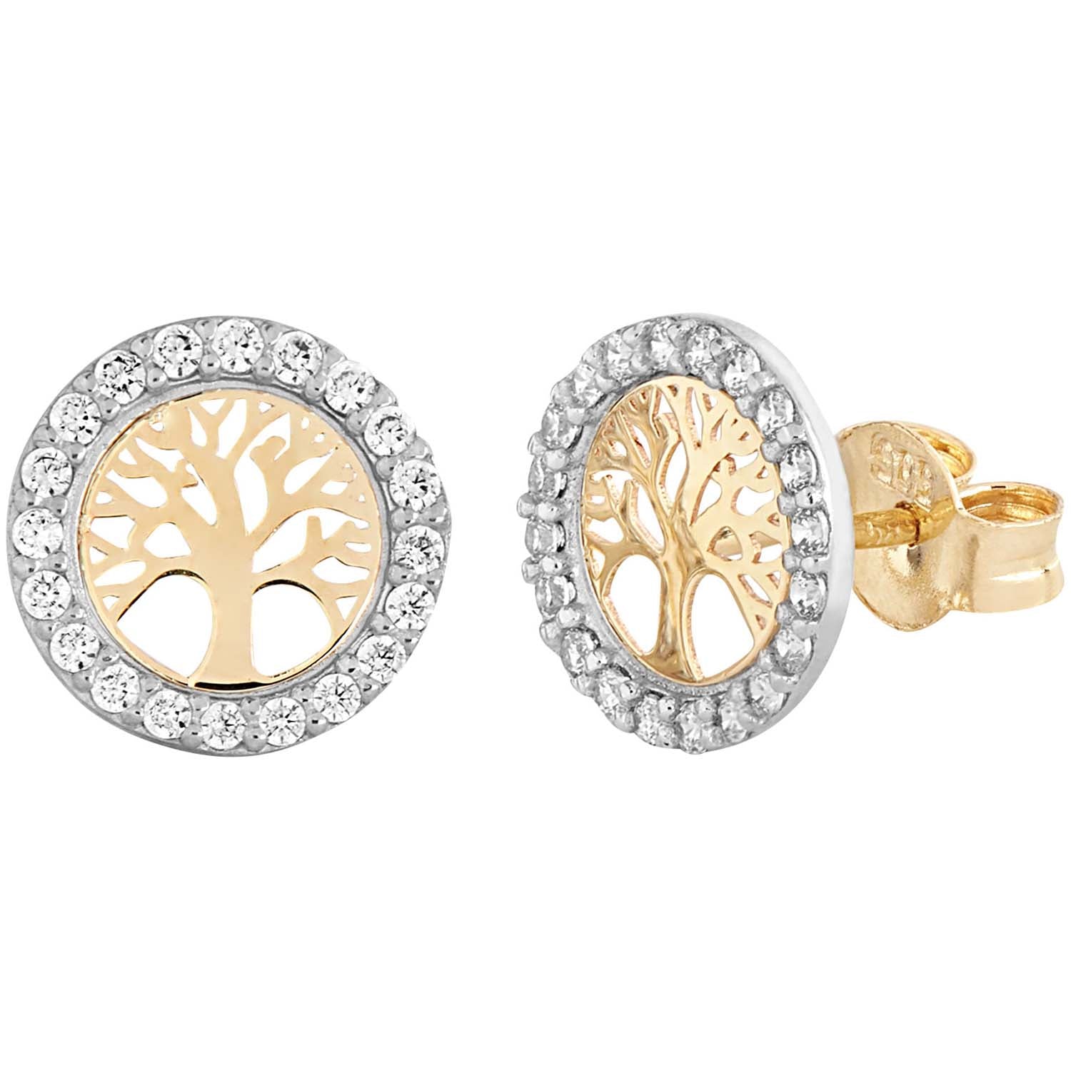 Aveny COLLECTION - Cirkel ørestikker m. zirkonia, livets træ - 14 kt. guld