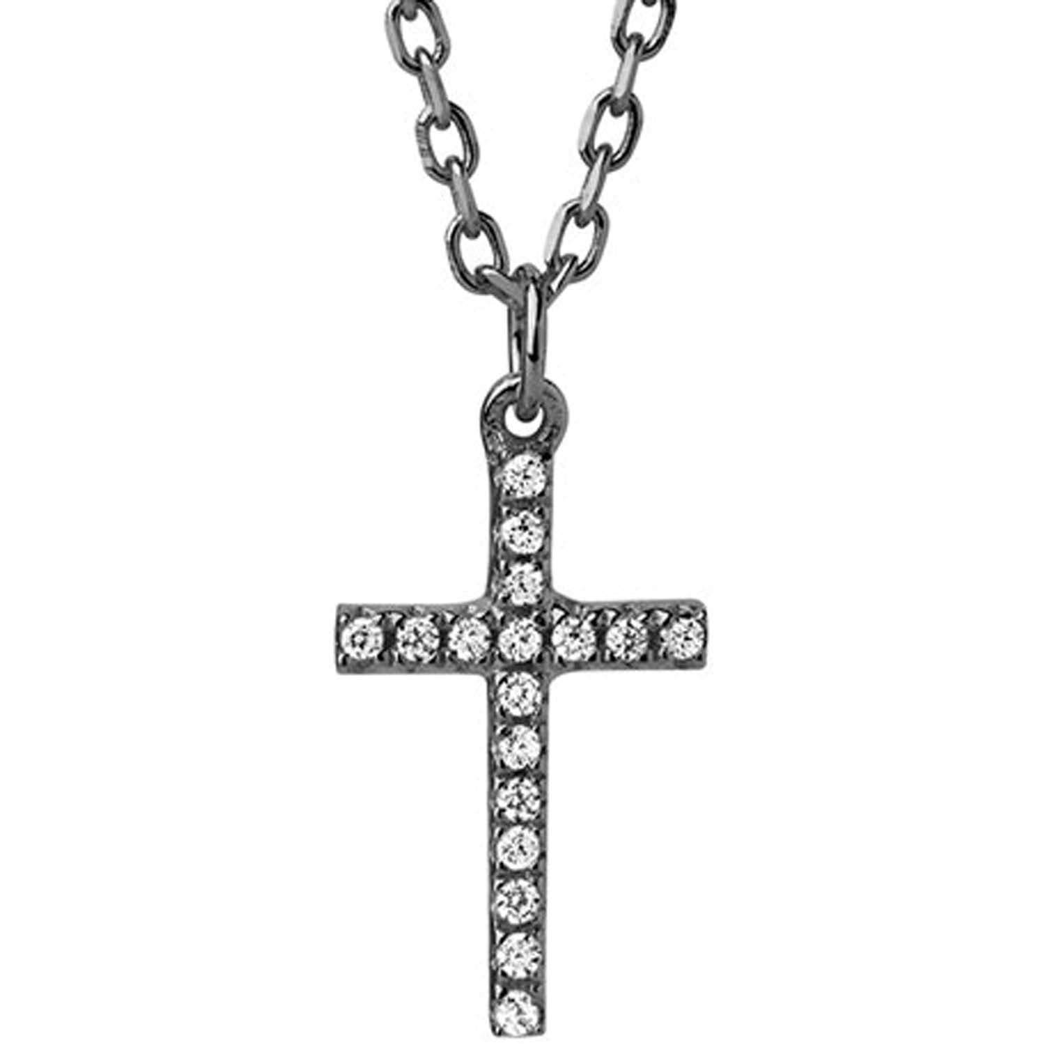 Aveny COLLECTION - Collier m. lille kors, zirkonia - Sortrhodineret sølv