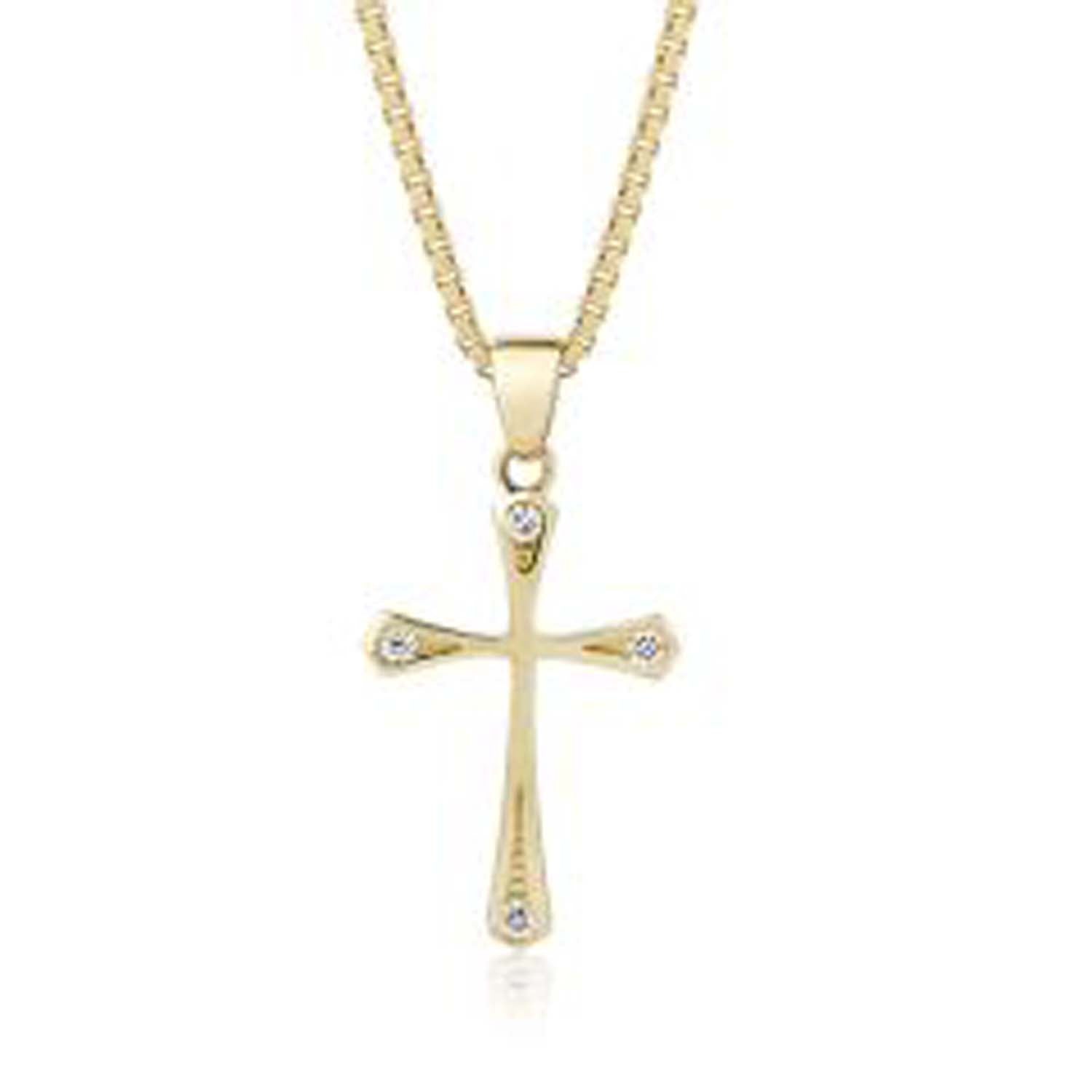 Aveny COLLECTION - Spinkelt kors, 4 zirkonia - 8 kt. guld