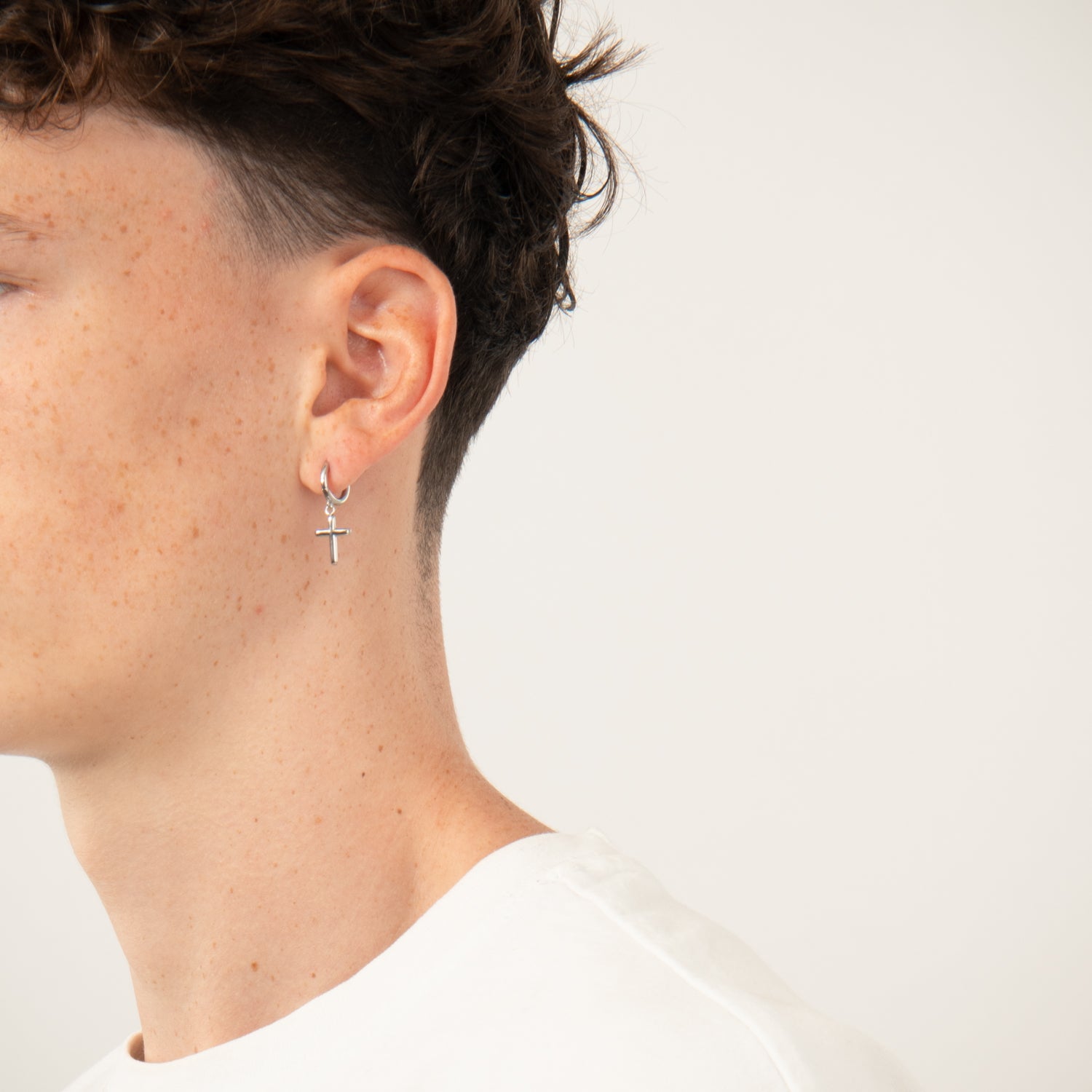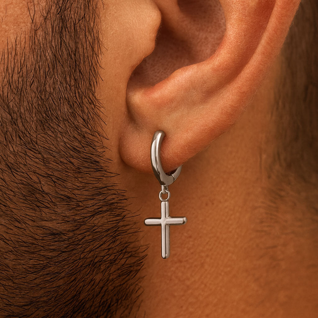 Fremstillet i holdbart rustfrit stål, tilbyder denne creol en skinnende sølvfinish, der komplementerer enhver stil. Det enkle, men kraftfulde korssymbol tilføjer en subtil, men meningsfuld detalje, der gør smykket både moderne og klassisk.