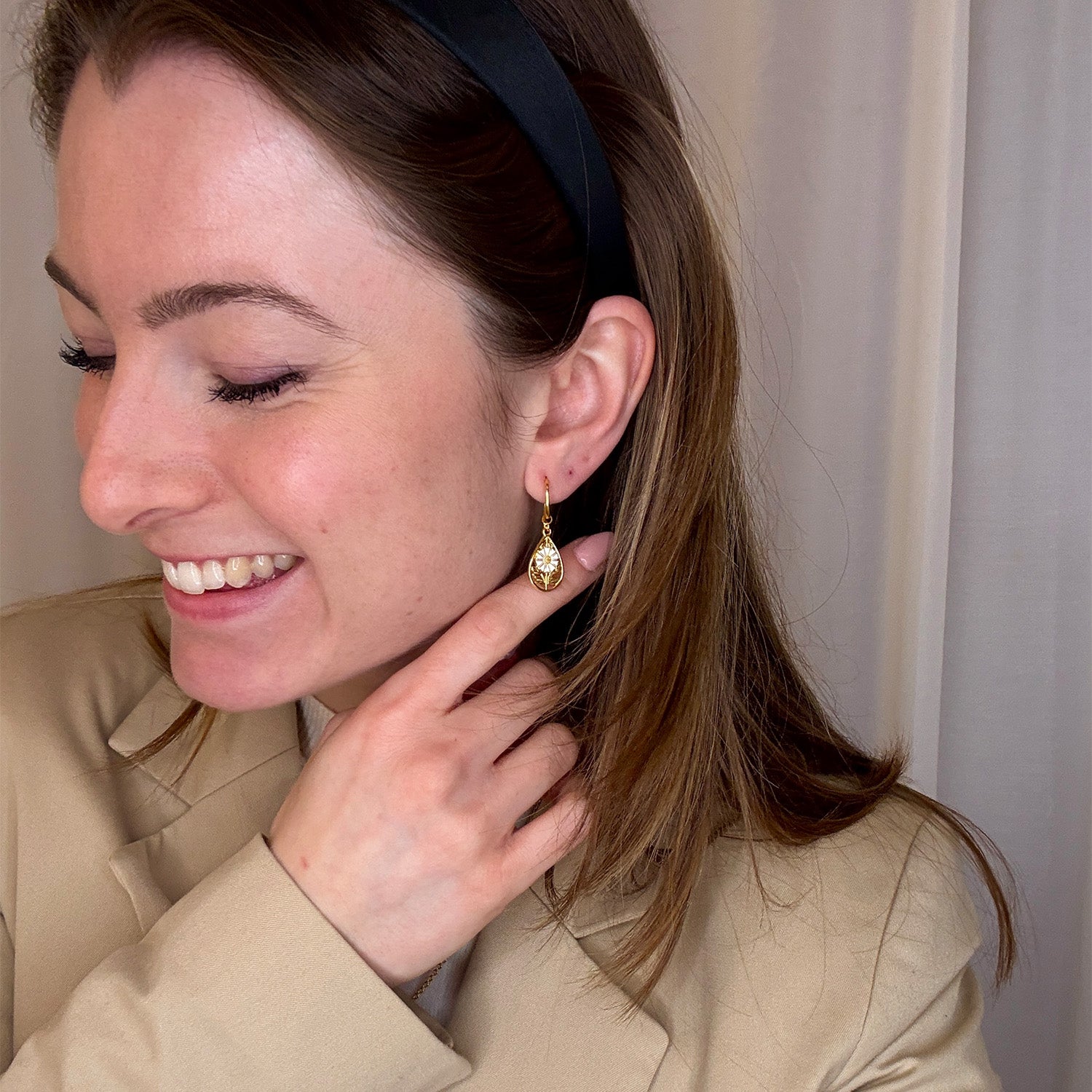 Lund Copenhagen - Dråbe øreringe m. marguerit, 7,5 mm - Forgyldt sølv