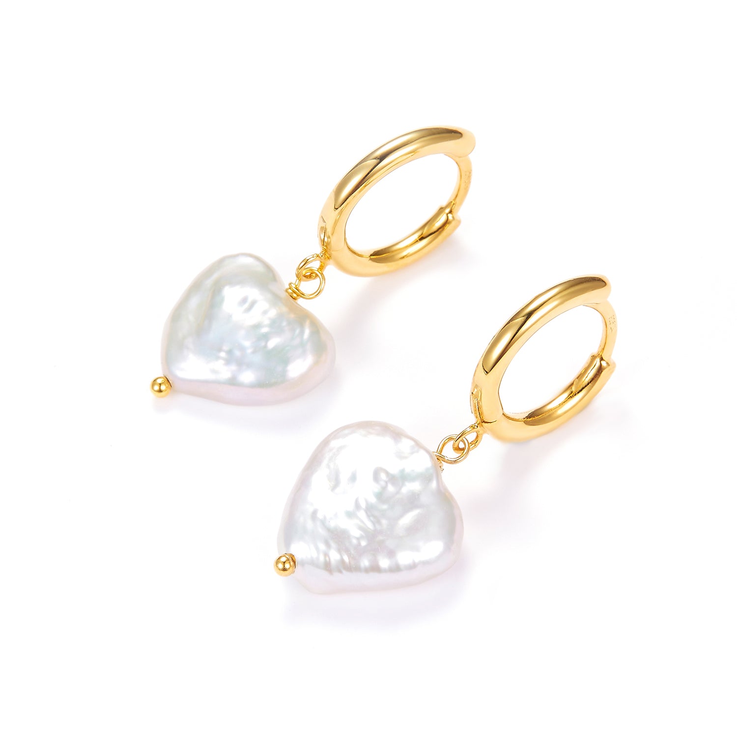 LuvaLu Jewellery - Pearly Heart øreringe - Forgyldt sølv