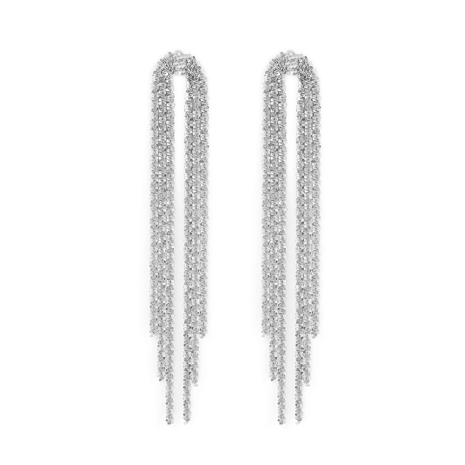 Disse øreringe udstråler en subtil elegance med deres slanke, sølvfarvede kæder, der falder yndefuldt. Den skinnende overflade reflekterer lyset smukt og tilføjer et strejf af glamour til ethvert outfit. Øreringene er lette og behagelige at bære, hvilket gør dem ideelle til både hverdag og festlige lejligheder.