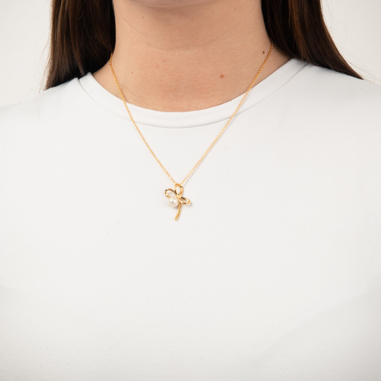 LuvaLu Jewellery - Pearly Bow halskæde, 42+3 cm - Forgyldt sølv