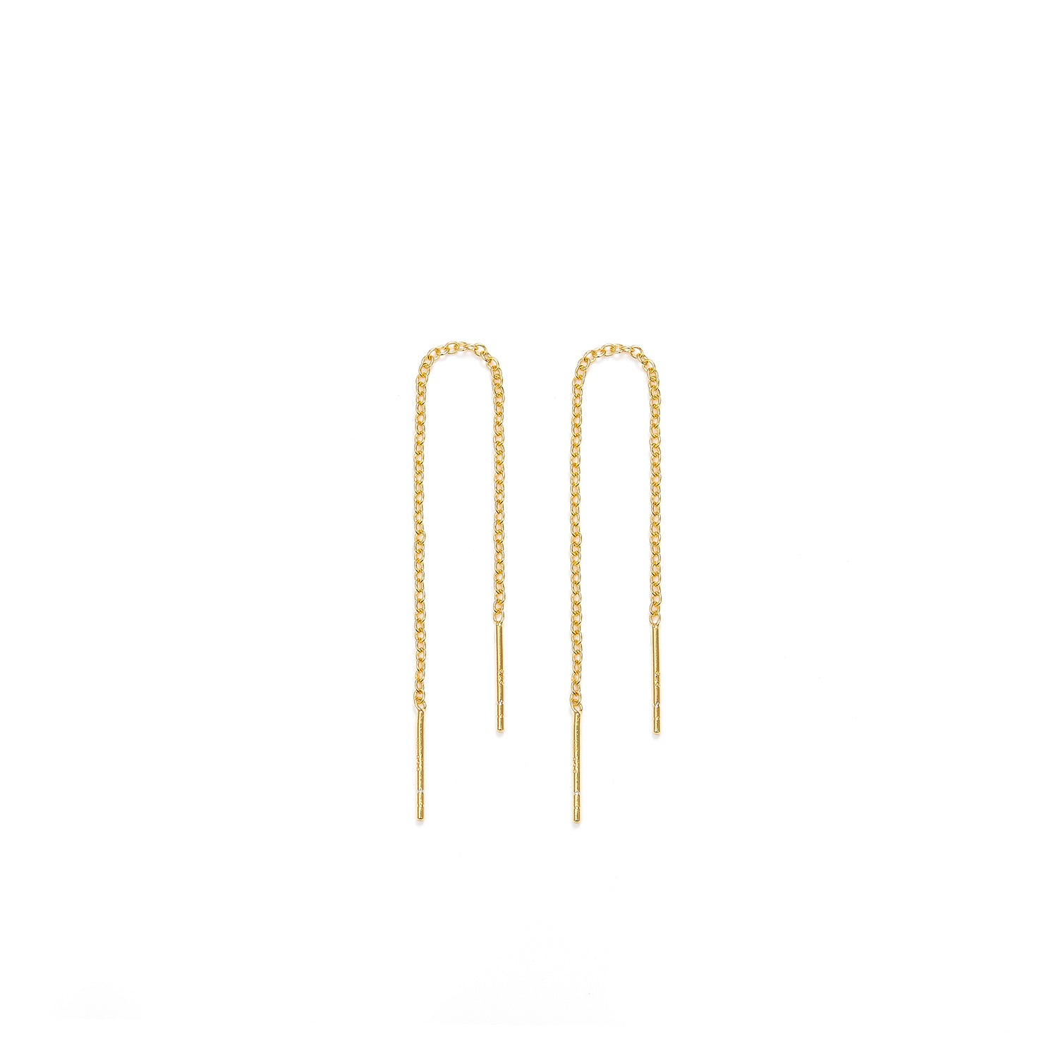 Den forgyldte overflade giver en luksuriøs følelse, mens det enkle design sikrer, at de kan bæres til både formelle og uformelle lejligheder. Ørekæderne er lette og behagelige at have på, hvilket gør dem til et alsidigt tilbehør i enhver smykkesamling.