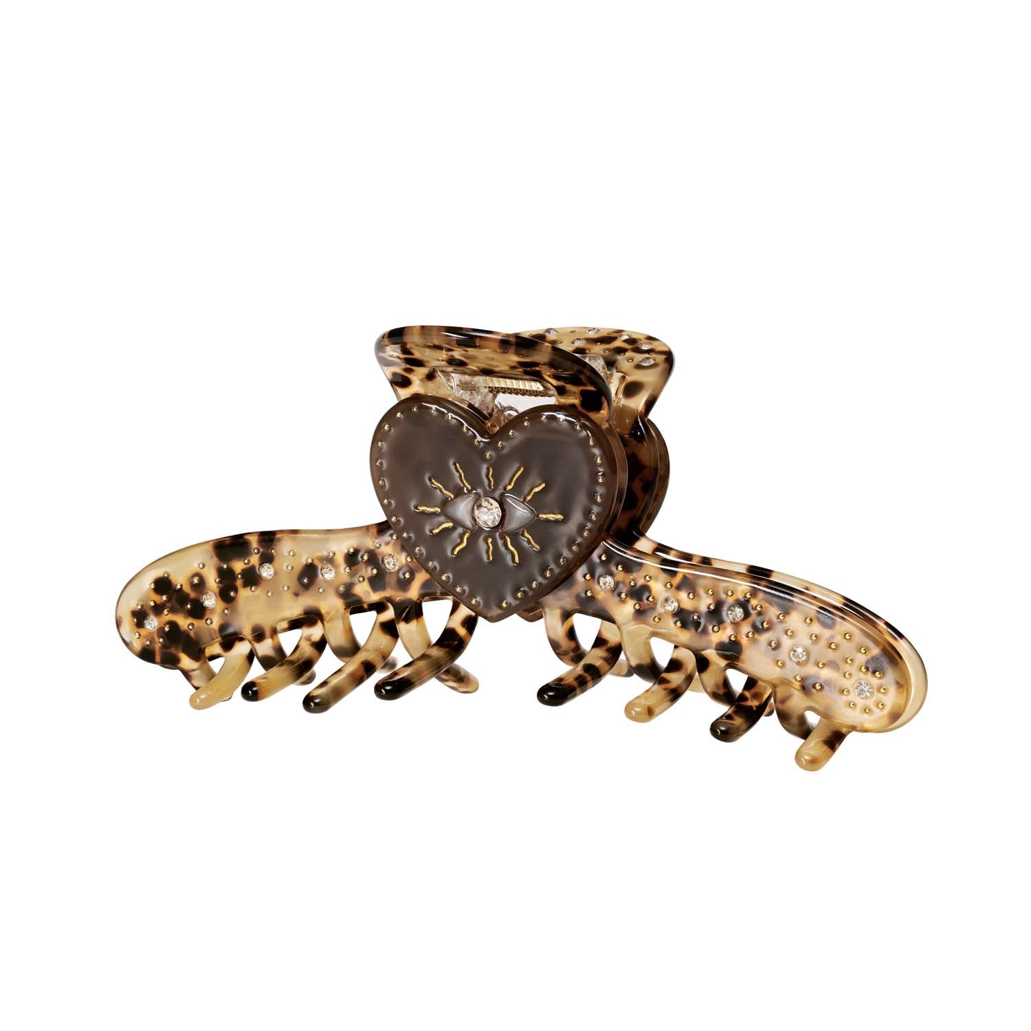 Den brune farve giver hårklemmen en varm og naturlig udstråling, der passer til enhver hårfarve. Acetatmaterialet føles glat og behageligt i hånden, hvilket gør det nemt at style håret uden at beskadige det.