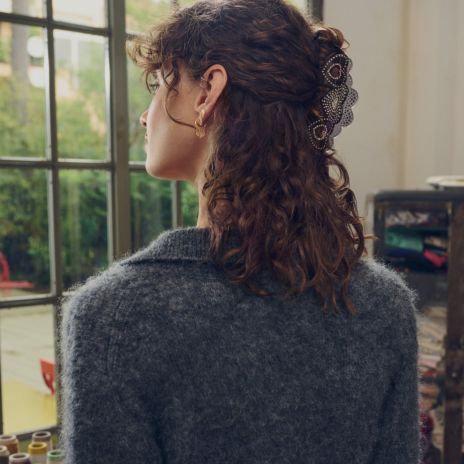 Esca Black hårklemmen er skabt med en sort, glansfuld finish, der fremhæver de delikate hjerteudskæringer. Den glatte overflade føles behagelig i hånden og sikrer et godt greb om håret. Med sit elegante design er denne hårklemme ikke kun et praktisk værktøj, men også et smukt tilbehør, der tilføjer et strejf af luksus til enhver frisure.