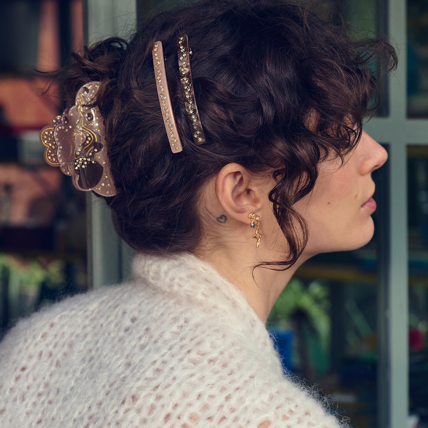Med Maanestens Juin Blush hårklemme får du et tilbehør, der ikke kun er praktisk, men også en stilfuld tilføjelse til din samling. Det er en perfekt måde at udtrykke din individualitet og tilføje et strejf af luksus til din daglige stil.