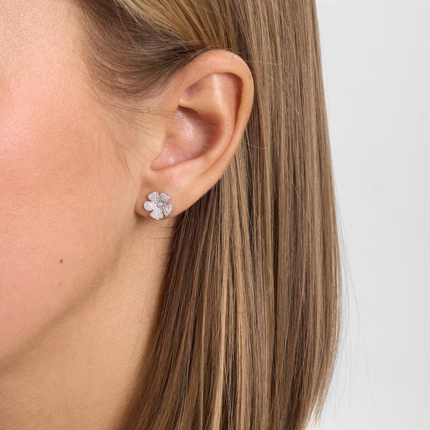 Mads.Z - Fleur ørestikker med zirkonia, 10 mm - Sølv