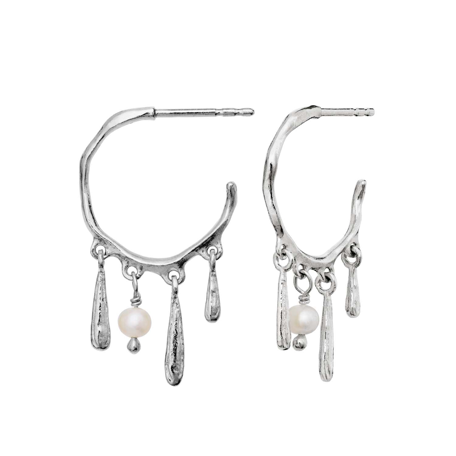 Disse øreringe er en del af Maanestens kollektion, der er kendt for sin unikke kombination af moderne og klassiske elementer. Sølvets glans spiller smukt sammen med de fine detaljer, der hænger elegant fra øreringenes bøjler. De små vedhæng tilføjer en dynamisk bevægelse, der fanger lyset og skaber en subtil, men iøjnefaldende effekt.