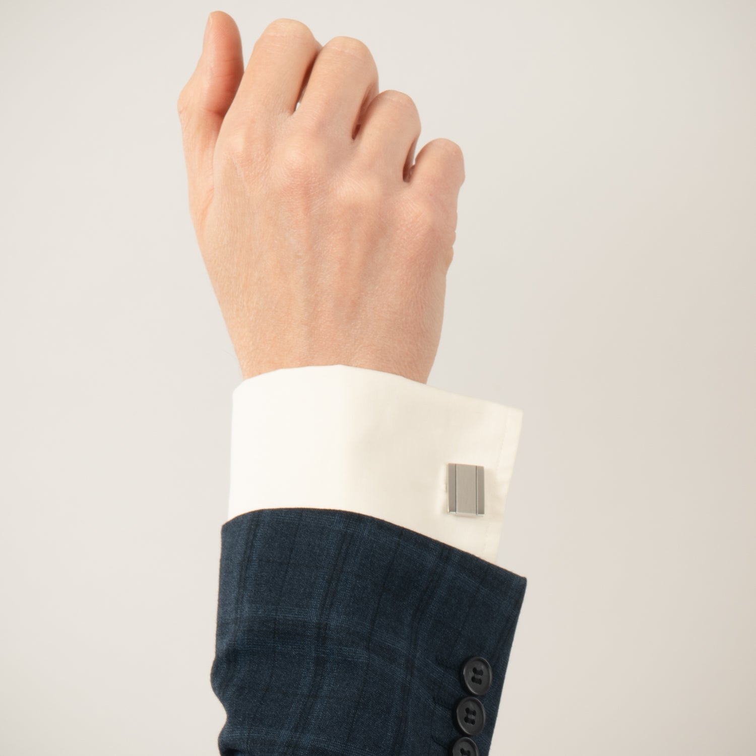 Manchetknapperne måler 19,5x14 mm og har en glat, poleret overflade, der reflekterer lyset smukt. De sølvfarvede striber giver et sofistikeret udtryk, der komplementerer enhver skjorte. Det rustfrie stål sikrer ikke kun holdbarhed, men også en tidløs elegance, der aldrig går af mode.