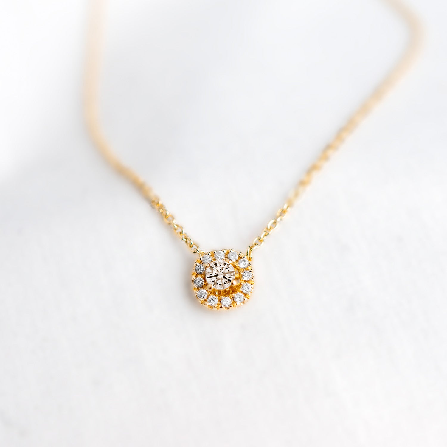 Denne halskæde fra Nuran er designet til at fange og reflektere lyset på en måde, der fremhæver den naturlige skønhed hos den, der bærer den. Den fine kæde komplementerer den centrale diamant, skabende en balance mellem delikatesse og styrke. Farvespillet mellem det rige guld og den varme champagnefarve skaber en harmonisk kontrast, der er både iøjnefaldende og elegant.