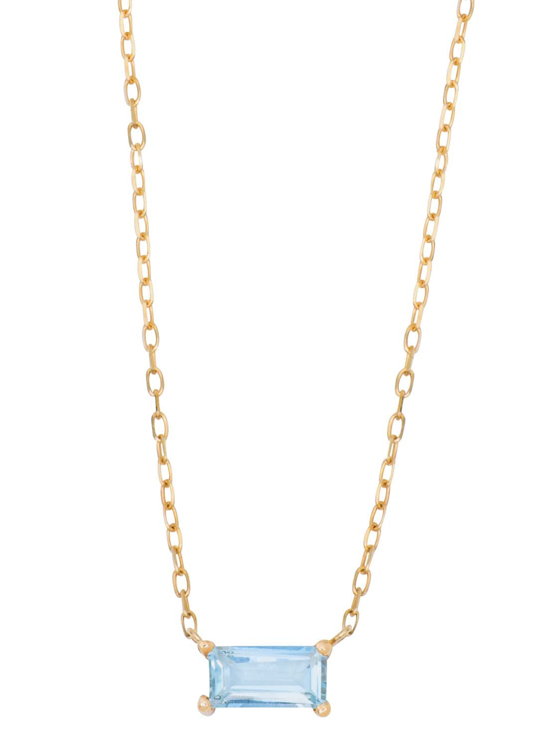 Aveny COLLECTION - Collier m. baquette blå topaz, 40-45 cm - 9 kt. guld